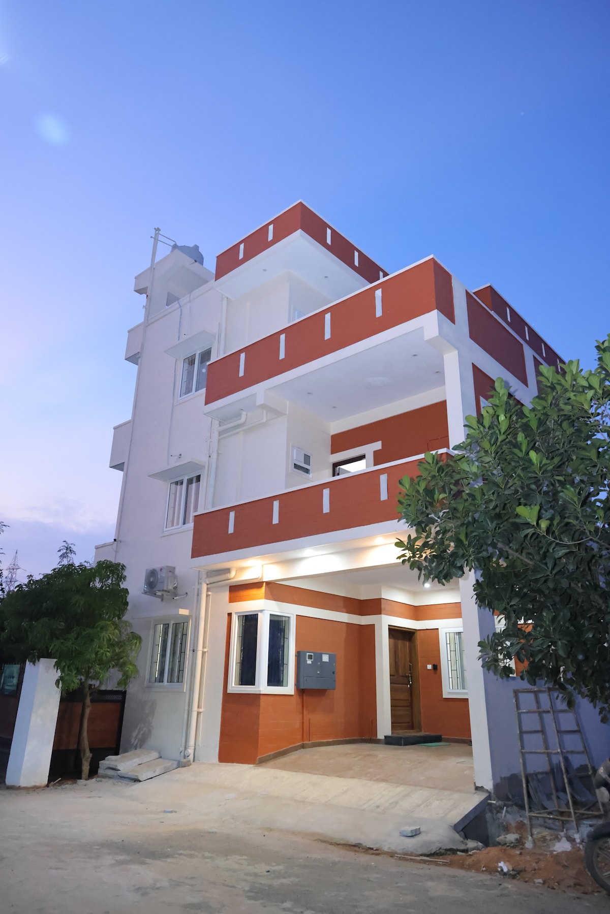 Your private hideout, thoughtfully designed with all modern amenities under one roof. This exclusive 4 BHK duplex offers the ideal blend of comfort and luxury. It is nestled amidst fruit-bearing trees, ensuring peace, greenery, and serenity—securely located within Aho Havens, Anugraha Layout. You can bring out the master chef in you in our fully equipped kitchen or enjoy an unforgettable, star-gazed barbecue nights that turns every evening into a celebration.