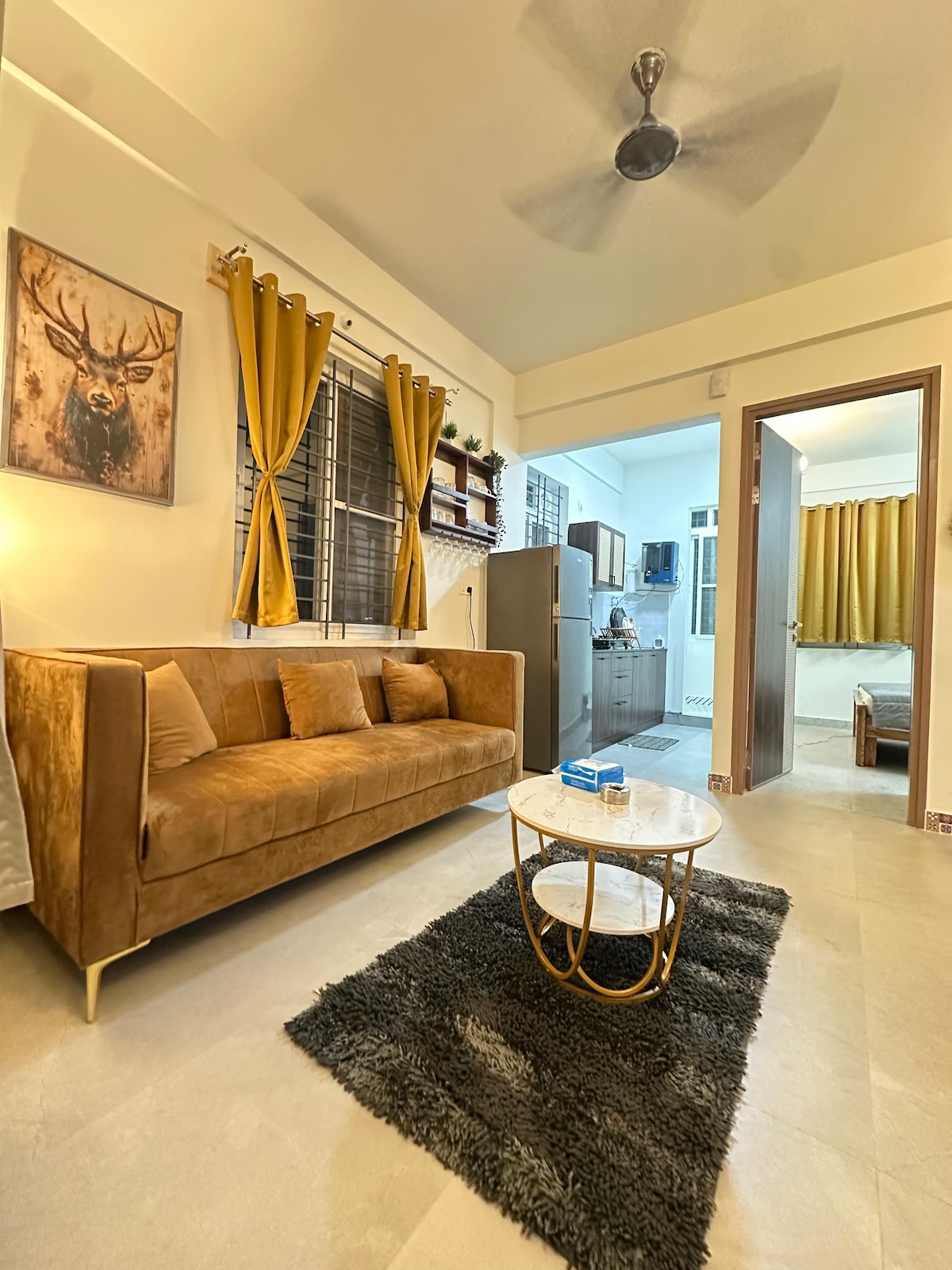 This one bedroom apartment is the perfect home away from home. It offers easy access to local attractions. Bedroom: Well-appointed bedrooms featuring comfortable bedding for a restful stay. AC is in the bedroom. Living Area : The spacious living area is filled with natural light, featuring stylish decor and comfortable furnishings. Kitchen: For those who love to cook a fully equipped kitchen with modern appliances and a complete set of utensils for preparing home-cooked meals.
