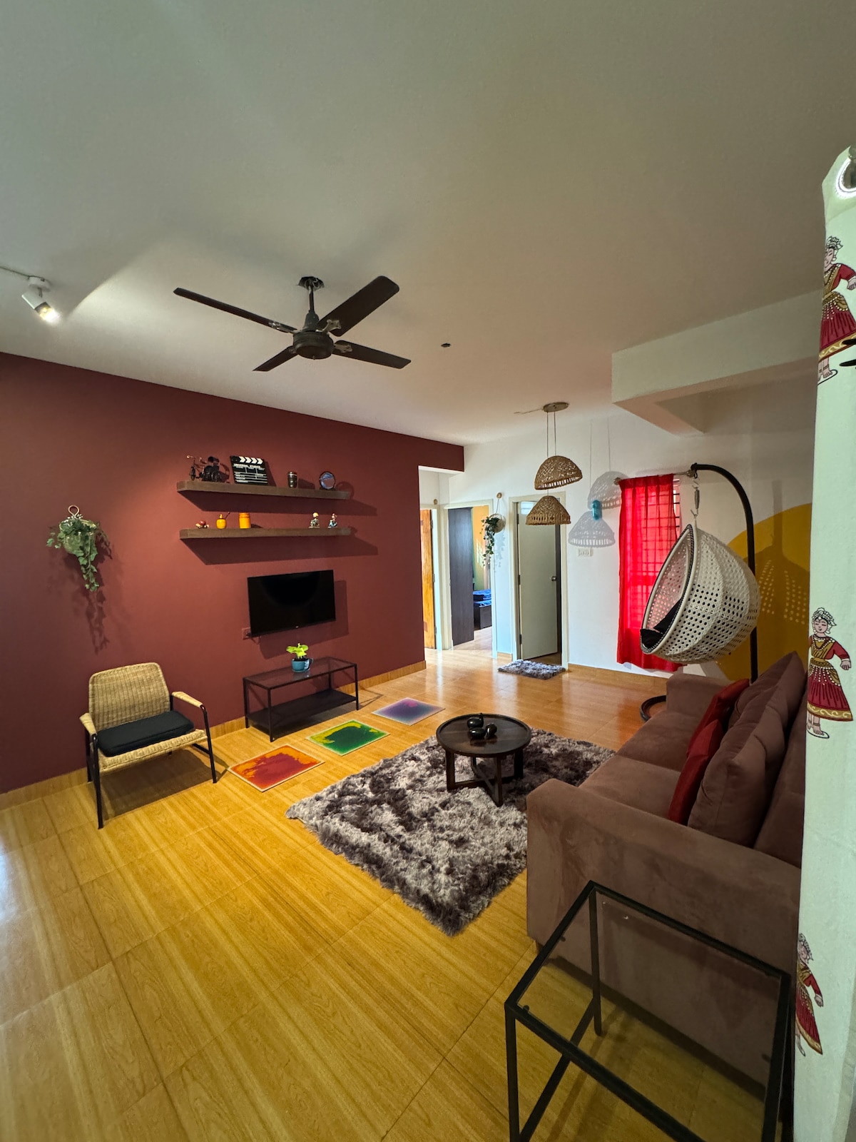 A bright, spacious 4BHK wrapped in greenery—perfect for families, group stays & peaceful work trips. Enjoy cozy bedrooms, balcony coffee moments, foosball/board games, and a fully equipped kitchen for easy, comfortable stays. Clean, calm and inviting—designed for a restful experience. Includes 65” Smart TV + Netflix, fast Wi-Fi and a sunny green-view balcony. ⚠️ No parties / no loud music. Quiet hours after 10 PM. ⚠️ Only confirmed guests may stay overnight. 🐾 Pets only with prior approval.