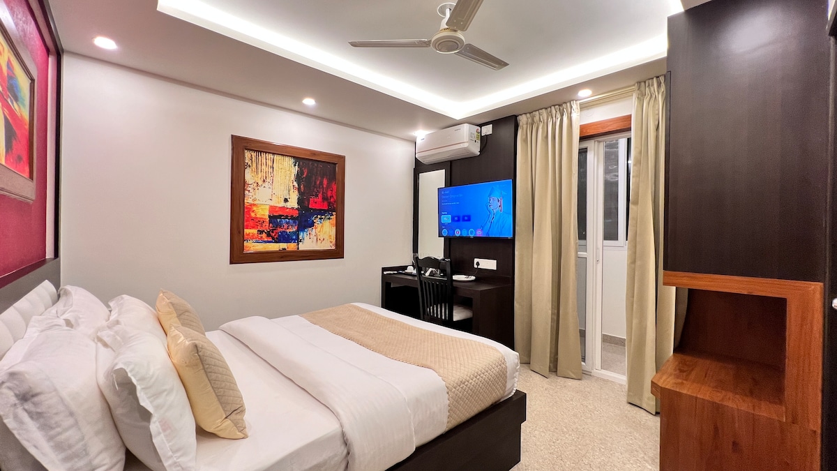 Welcome to Buteak Suites, your perfect urban retreat in the vibrant BTM Layout, Bengaluru. Blending the warmth of apartment living with the sophistication of boutique hotel hospitality, our thoughtfully designed 1 BHK Large Suite(460 sq feet) & Extra Large Suite (530 sq feet). Whether you’re here for work or leisure, enjoy a seamless stay with modern amenities, flexible check-ins, complimentary gym access from fitness yard, and daily unlimited housekeeping.
