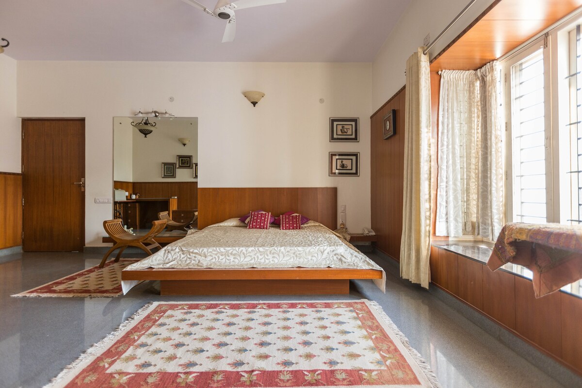 New Tudor Revival independent private airconditioned villa very close to BEL Circle & Movenpik Hotel , It has a beautiful large living with antique rosewood furniture and dining with Mysore teakinlay work . Lavish airconditioned bedroom with ample storage. Beautiful bathroom with glass partition 24 hour solar heated water. Fully equipped kitchen . It's 25KM to Airport. We've recently rated by LBB as one of top 10 AirBnB places to stay in Bangalore. We thank our wonderful guests for the honor.