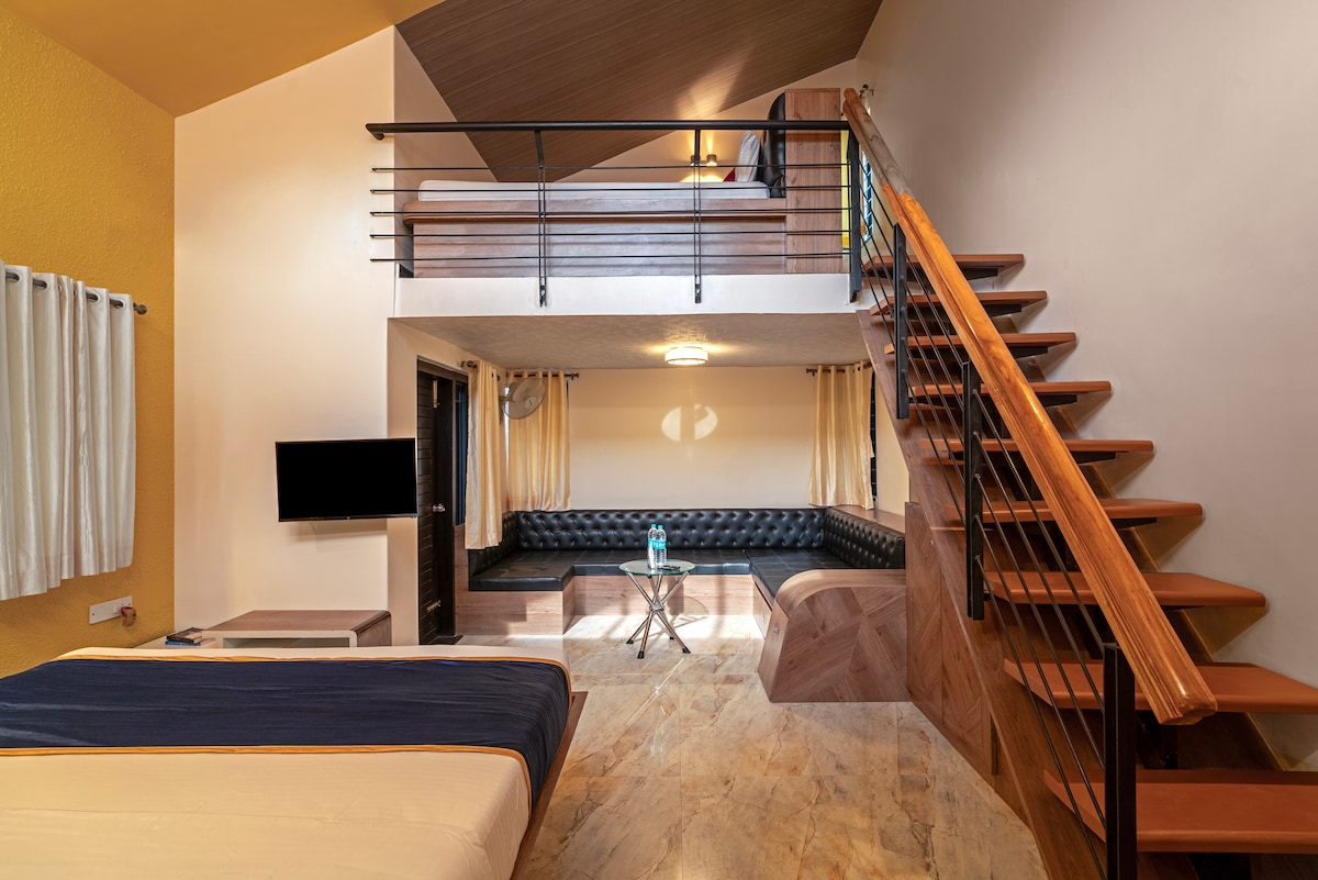 You’ll love the stylish decor of this charming place to stay. The property also includes rooms and villa. Dorm in 3rd floor of the building and no lift 6000sqft shared lawn space with rooms guests. The lawn area is a part of the event venue at the property which I attached to 2 huge halls. The dorm is located in a 2 acre villa rental property with other villas and event venue. Request you to ask about any events happening that day before placing the booking.