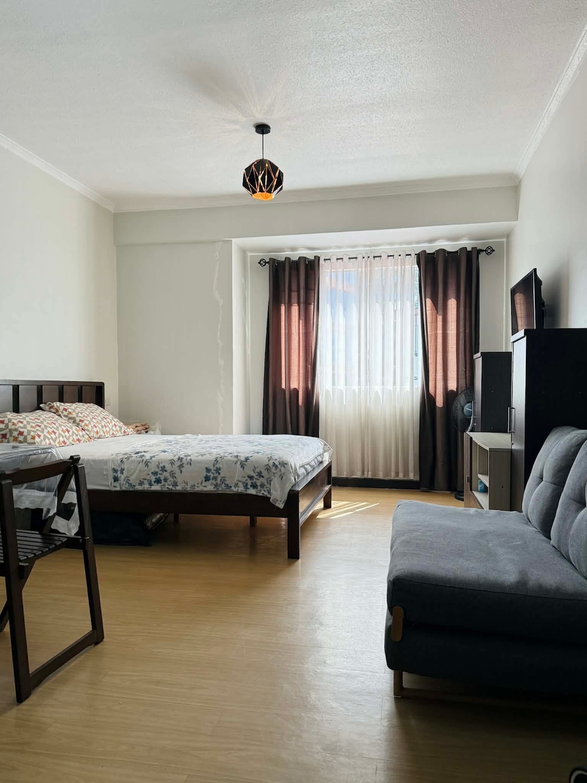 Experience a stylish industrial-inspired studio designed for comfort and convenience. This space features a fully equipped kitchen with complete utensils, perfect for home-cooked meals. The cozy and stylish interior provides a relaxing atmosphere, ideal for couples looking for a quiet retreat. Located close to the city center, with easy access to jeepney lines and taxi routes, making it convenient to explore Baguio. A great choice for those seeking both comfort and accessibility.