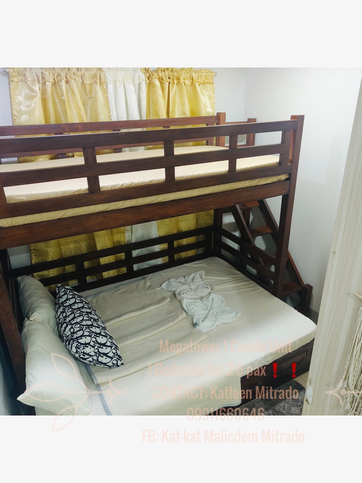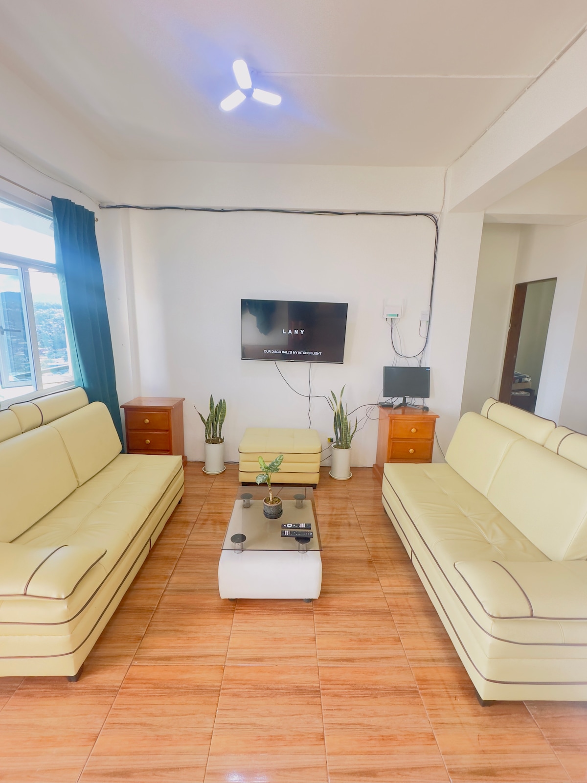A 32 sqm/1BR unit at Bristle Ridge Residences located atop of mountain ridge. It's near famous tourist destinations, i.e., Wright Park, The Mansion, Camp John Hay, Botanical Garden, Mines View Park, etc. Relax with the whole family at this peaceful place with view of city of Pines and beautiful mountain ranges, and unlimited Wi-Fi. Notes: (a) Early check-in/late check-out might be subject to additional charges (b) Don't expect hotel-like amenities (c) Fur friends are welcome (2 max)