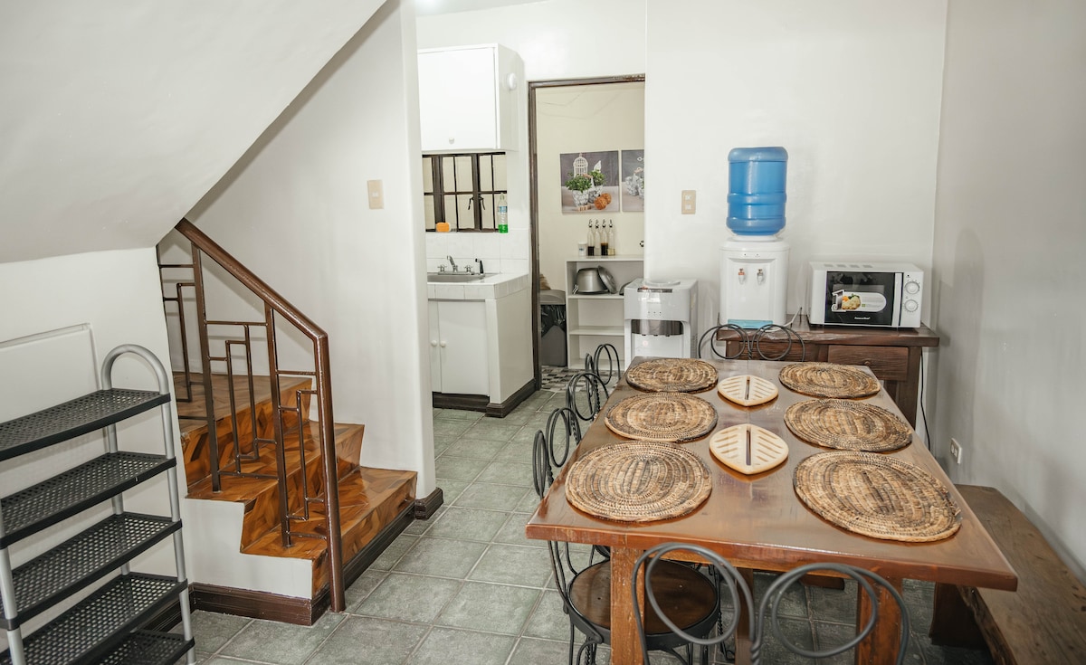 Our place is a spacious 3 bedroom apartment near Burnham Park & Baguio Public Market. It has a veranda in front and at the back where you can enjoy Baguio's cool air. If it gets too cold, step right back in & have your hot cocoa in front of a warm, inviting fireplace. It has 2 toilet & baths complete with bidet & shower heaters. The kitchen is equipped with everything you need to cook basic meals & serve a family of 11. It also has a refrigerator, microwave oven, electric kettle and gas stove.