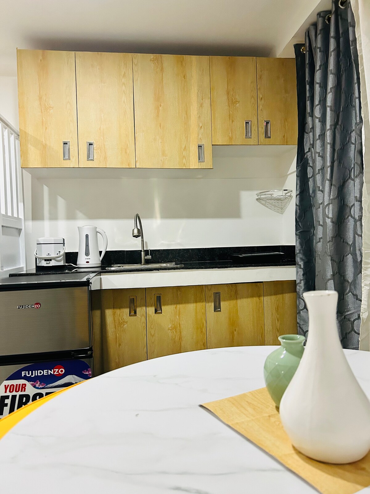 Studio type condo for transient good for 4 persons just two minutes away from Session road and SM Baguio. Complete with appliances such as refrigerator, microwave oven, rice cooker, induction cooker, electric kettle, bread toaster, air fryer, electric fan, television and WIFI. Cooking is allowed.