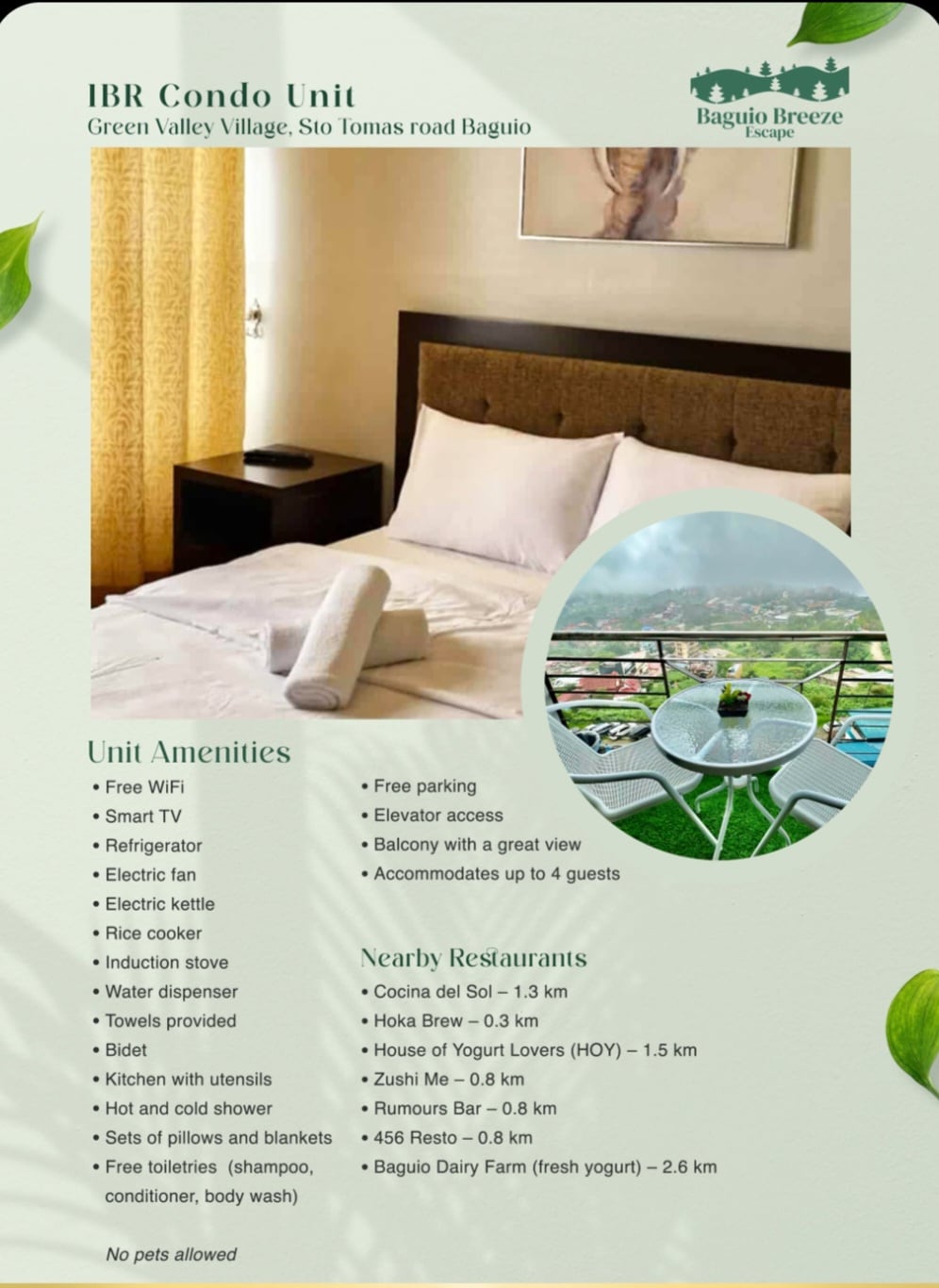 CITY PROPER❗️MISMO❗️WALKABLE SA LAHAT❗️ 👍1 bedroom (3 beds) brand new condo unit ANIKA’S URBAN HAVEN BAGUIO 🏃♂️WALKING DISTANCE TO: 🏃♂️SM Baguio 🏃♂️Session Road 🏃♂️Cathedral 🏃♂️Burnham Park 🏃♂️Night Market 🏃♂️City Market 🏃♂️Victory Liner 🏃♂️Gov. Pack bus terminal 🏃♂️Hospitals 🏃♂️Botanical Garden 🏃♂️Wright Park 🏃♂️The Mansion 🏃♂️Pink Sisters