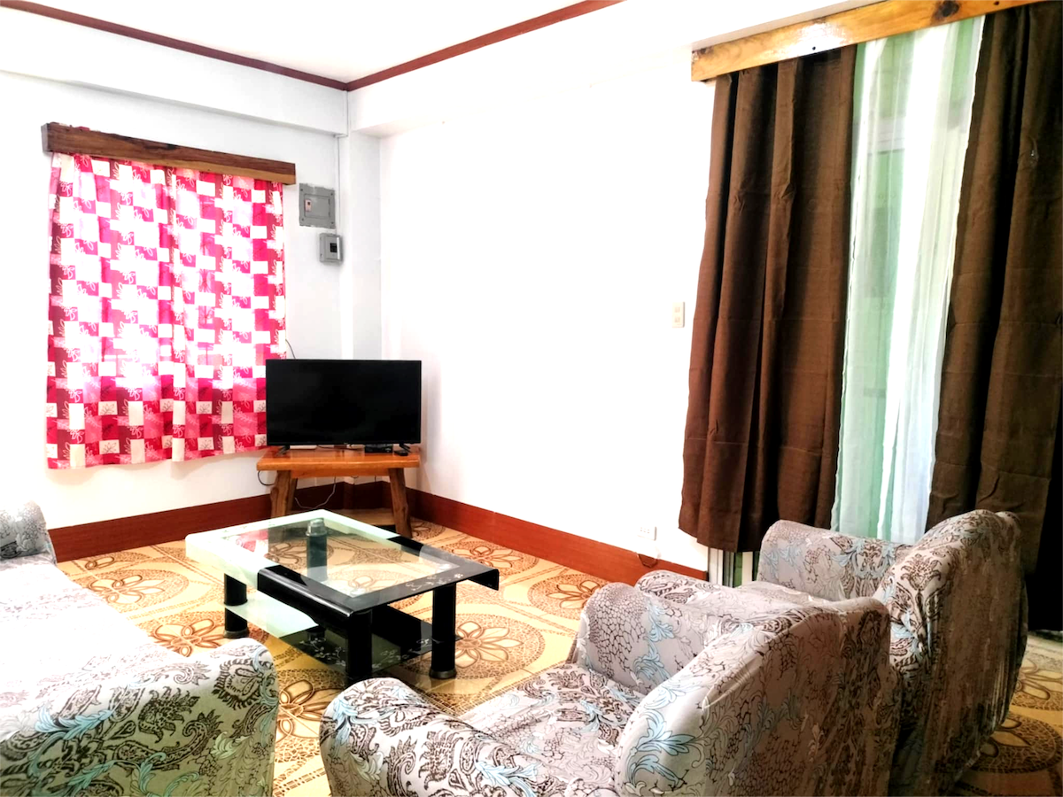 •1st room (2 pax) w Bathroom w Double Bed •2nd room (4 pax) w 2 Double bed •2 Bathrooms •Good for 6pax, 7-10 500head •W Towels •1 E-fan each room •Wifi •Bathroom w h/c Shower w Bidet •Living Room with Tv •Kitchen w cooking utensils •W Ref & Microwave •Roadside Building •Near Talipapa •Daanan ng Jeep & Taxi 🏠-🚘 5min Burnham Park 8min Sm 8min Camp John Hay 9min Botanical Garden 13min Mirrador Eco Park 15min Mines View Park 15min Stone Kingdom