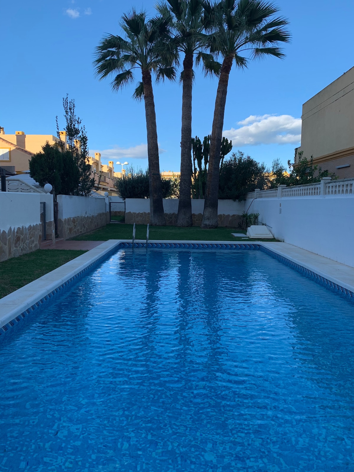 Bienvenidos a Casa Ibicenca en Benicasim, un adosado de estilo mediterráneo en un espacio de lujo y confort a 3 minutos a pie de la playa. Situada en un urbanización tranquila con piscina para adultos y niños. La casa cuenta con 3 dormitorios, cada una equipada con su split individual de aire acondicionado frío/calor, mosquitera y ventilador de techo; cocina; amplio salón con aire acondicionado; preciosa terraza con espacio chill-out; 1 baño 1 aseo;Wifi gratis de alta velocidad; parking privado.