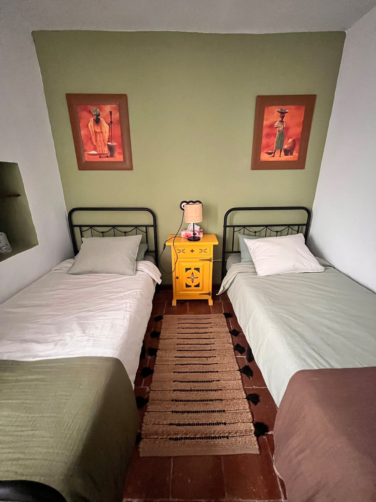 Two single beds in a quirky village house