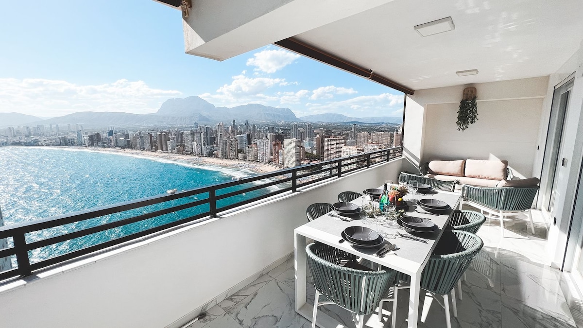 V tomto prostorném (170 metrů čtverečních) a jedinečném ubytování najde pohodlí celá skupina. Fantastický výhled na celý Benidorm a Benidormský ostrov. Vychutnejte si klid v oblacích a ruch velkoměsta nadosah. Užívejte bazénu, gymu, basketbalového hřiště, který je vám k dispozici. Tři ložnice, každá se samostatnou koupelnou a šatnou, velký obývací pokoj a prostorná terasa. Parkovaní v garáži v domě. Pět minut pěšky na pláž Levante.