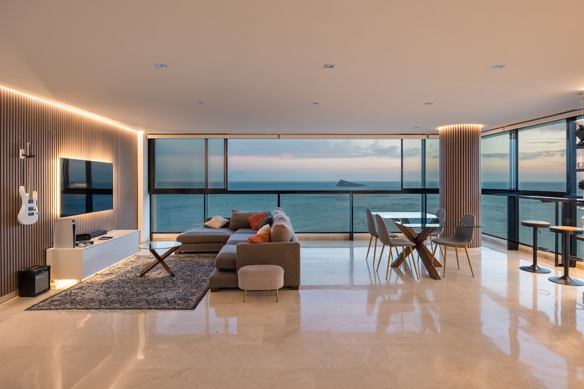 Welcome home! Your new 80 m² luxury apartment is located in an exclusive, quiet area of Benidorm, just 30 meters from the fantastic sandy, longest beach in Benidorm - Poniente beach. The location affords you a wonderful view of the sea, and there is a 200 sqm terrace with a pool. The tasteful and exclusive interior fittings and furnishings invite you to relax and enjoy every moment, completely undisturbed. There is a modern smart television in every room. And of course you have your own garage.