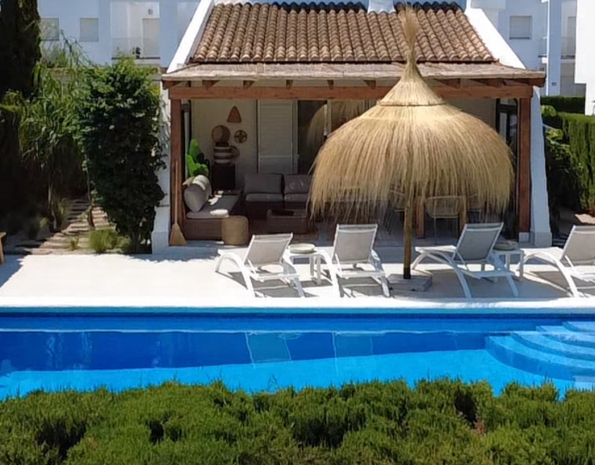 Villa Sol y Luz es una moderna y amplia residencia que se propone como la mejor opción para desconectar y relajarse. Cuenta con una gran piscina de tratamiento salino, barbacoa, terraza exterior cubierta, 5 dormitorios dobles en la primera planta y tres más en la planta baja, 6 baños, amplio salón comedor, cocina totalmente equipada, lavandería, vivienda con aire acondicionado, calefacción, wifi cableado en algunas estancias, aparcamiento privado. La Villa acaba de ser reformada íntegramente.