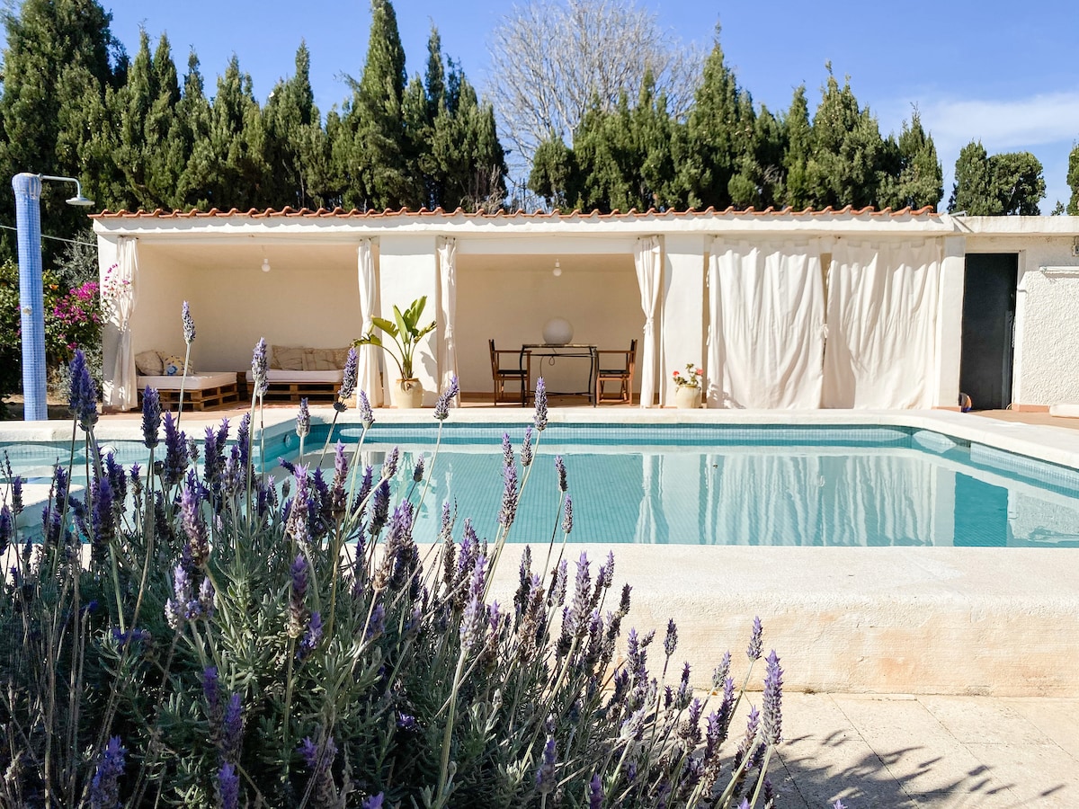 Casa refugio con piscina privada, ubicada al lado de las rutas senderisticas y puntos de escalada de Cabezó de Or y Cuevas de Canelobre. Se puede disfrutar de la tranquilidad, plena naturaleza y vistas panoramicas al mar y montaña a la vez . Ideal para pasar fin de semana haciendo deporte o para descansar. Sitio ideal para hacer barbacoa en entorno privado. A penas 12-15 km de la playa de Campello y San Juan Alicante. Casa se encuenta dentro de la finca de nuestra propiedad.