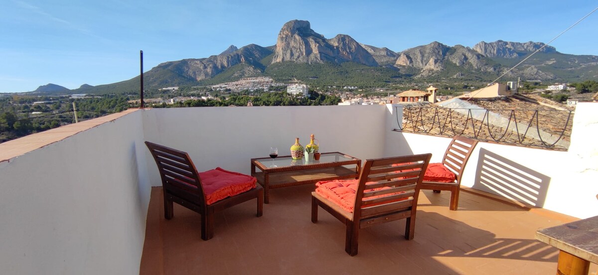 Casa de Pueblo con encanto, ideal para pasar unos días inolvidables en familia o con amigos. En el Casco Antiguo, a pocos metros del Castillo de Polop, con unas vistas espectaculares. Cerca de Guadalest, Las Fonts de Algar y a pocos kilómetros de las playas de Altea, Benidorm y Villajoyosa. A 7' de la Ciudad Deportiva Camilo Cano de La Nucía. A 30 ' de Alicante, con tren de alta velocidad que te lleva a Madrid en 2 h; 50' minutos del Aeropuerto de Alicante-Elche; y a 1 h y 1/5 de Valencia.