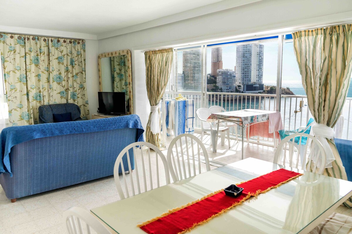 This charming newly renovated apartment is located between La Cala (70 m from the beach) and Benidorm´s Playa Poniente. 1 bedroom, 1 bathroom with a shower, 1 spacious living area with a glazed terrace and spectacular views to the sea, and an open concept kitchen. The apartment fits up to 4 persons. There is a double bed (135 cm) in the master bedroom plus a sofa-bed (fits 2) in the living room. Shops, supermarkets and cafes are within walking distance.