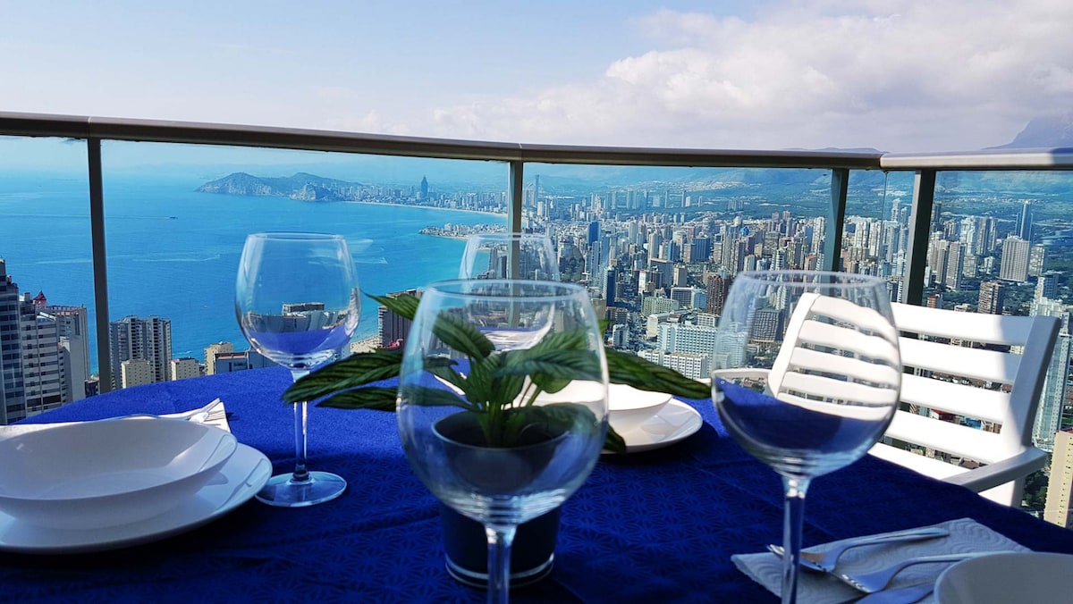 ¡Recién reformado! (Abril 2024) Disfruta de unas vistas panorámicas de vértigo, desde este impresionante apartamento situado en la planta 38 de Torre Lúgano, uno de los edificios más altos y modernos de Europa. Con dos habitaciones y dos baños, este apartamento tiene capacidad para alojar a 4 personas, y dispone de una cocina completamente equipada, un salón-comedor, y una espectacular terraza abierta en la planta 38 con vistas al mar y a la ciudad de Benidorm.