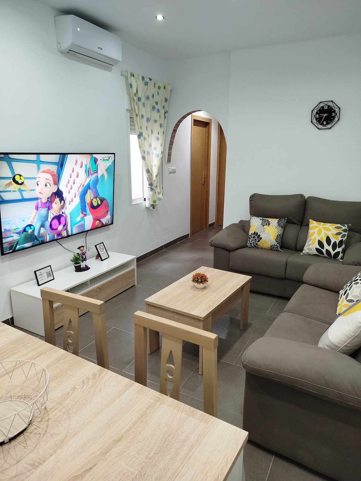 Os presento nuestra Casa, tranquila y céntrica con plaza de Garage y aire acondicionado incluido. Gayfriendly. Totalmente equipada (para niños y bebes ). Situada frente al Castillo, 10 min de la playa del Postiguet y Mercado Central, 5 de la Plaza de toros, y 2 del museo Marq. Parada de tram del Marq a 2 min y varias paradas de bus. Se encuentra en una zona tranquila alejada del ruido nocturno. Entrada independiente y autónoma (disponible+ mét de entrada). Capac legal 4 per +2 suplet.