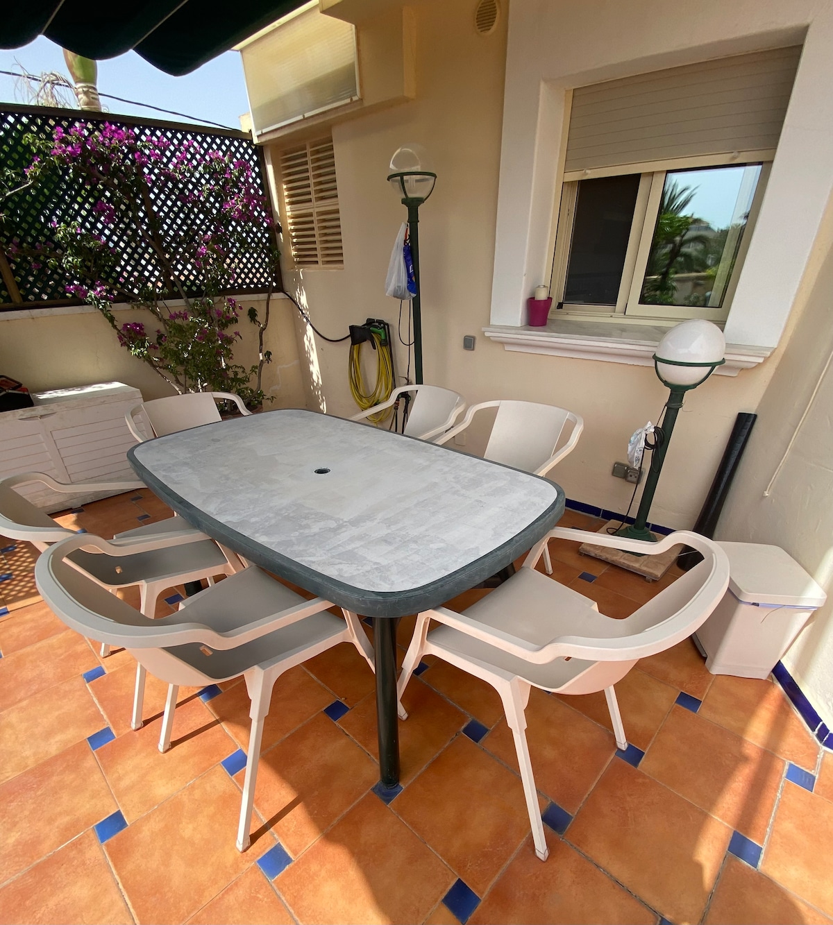 En 1° línea de playa, con vistas espectaculares. En urbanizacion con todos los servicios, tranquila pero con ambiente vacacional con paddel, tenis, barbacoa, chiringuito, zona infantil, futbol y basket. Cerca de chiringuitos, bares, restaurantes, tiendas. Transporte público a pocos metros de autobuses, tren. Una playa de más de 6 km con bandera azul que ofrece todos los servicios. A 10 km de una gran ciudad como es Alicante. Multiples opciones de ocio, diurno, nocturno, etc.. a/a y calefaccion.