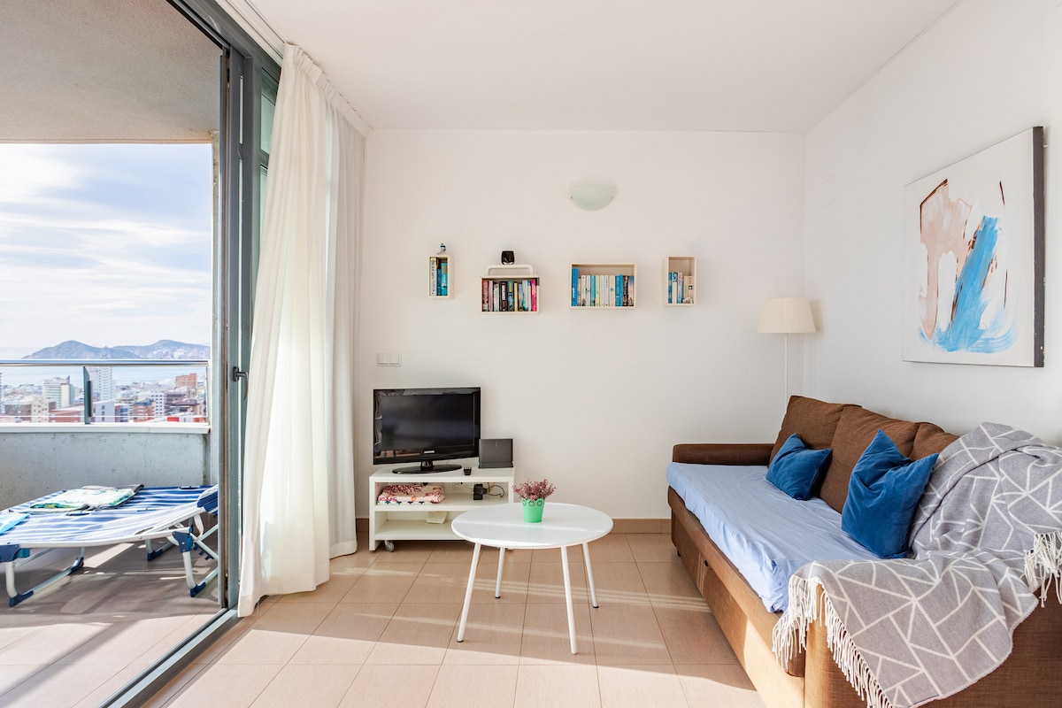 Apartamento totalmente reformado para unas vacaciones inolvidables entre el mar Mediterráneo y las privilegiadas vistas de esta acogedora planta 19. Encontrarás en él todo lo necesario para que tus vacaciones sean perfectas, disfrutando de la tranquilidad, silencio y vistas de este espacio situado a 2 min. de Avenida de Europa, 3 min. de Playa de Levante y 8 min. del Centro de Benidorm. Te esperamos