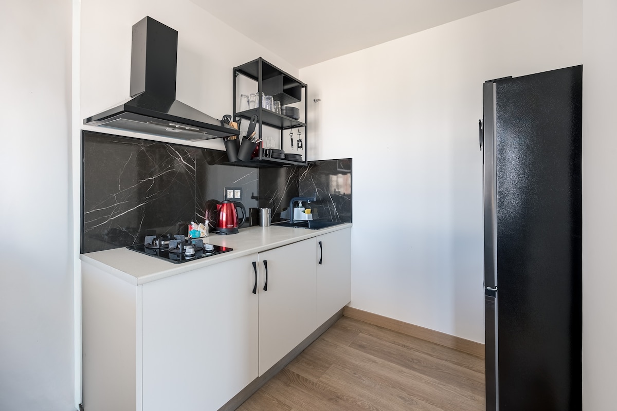 New, modern and spacious studios, fully equipped, in the historic center of Benidorm and just 50m from the beach. Designed to make the most of the space, with a fresh and Mediterranean style. Capacity up to 4 people. Smart TV and free WIFI. Gallery with Washing Machine. Ideal location for families and couples who want to enjoy such an exciting city. Surrounded by Restaurants and Bars. The building has a charming pool on the roof, where you can end a day at the beach.
