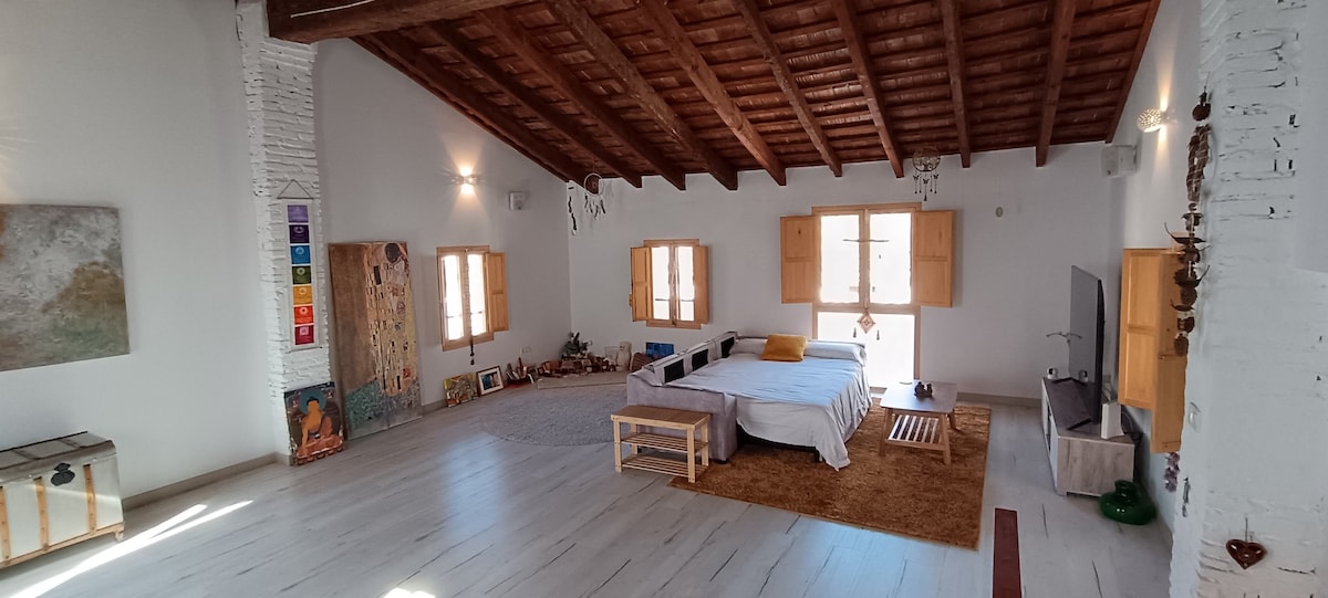 Precioso alojamiento de diseño en Burjassot, Valencia. Nuestro Superloft es un espacio cuidado al detalle, consta de un espacio único con cama doble, cocina totalmente equipada, un baño con ducha, zona con mesa y sillas, zona para relajarte con sofá y televisión y un patio interior con mesa y sillas. Wifi. Se encuentra a menos de 500m del metro que lo comunica con Valencia centro, 6 paradas en concreto. Un lugar especial donde alojarte cercano a la ciudad, la playa y la sierra Calderona.
