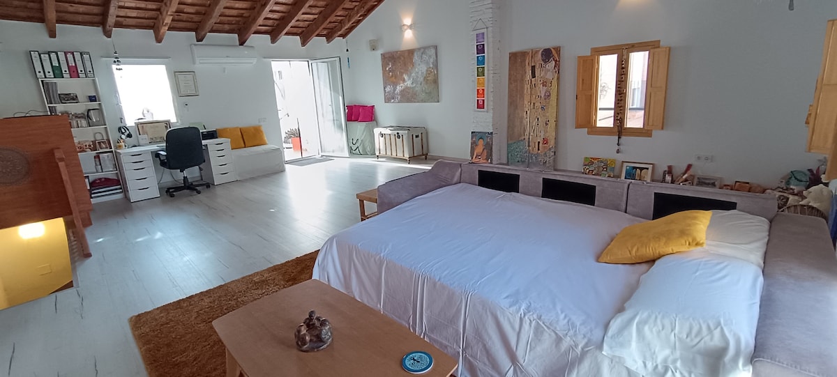 CHARMING, COMFORTABLE and very BRIGHT apartment. It has a genuine touch of ART and COLOR. COZY Loft of 72 square meters, with a bedroom, full bathroom and fully equipped kitchen. Very good quality apartment with WOODEN FLOOR, CENTRAL HEATING, AIR CONDITIONING, FREE HIGH SPEED WIFI, SMART TV, SWIMMING POOL and PARKING Find inspiration amid the alluring aesthetics of this bright space. The residence featuresan open-plan layout, urban-chic furnishings and decor, and access to a shared outdoor pool