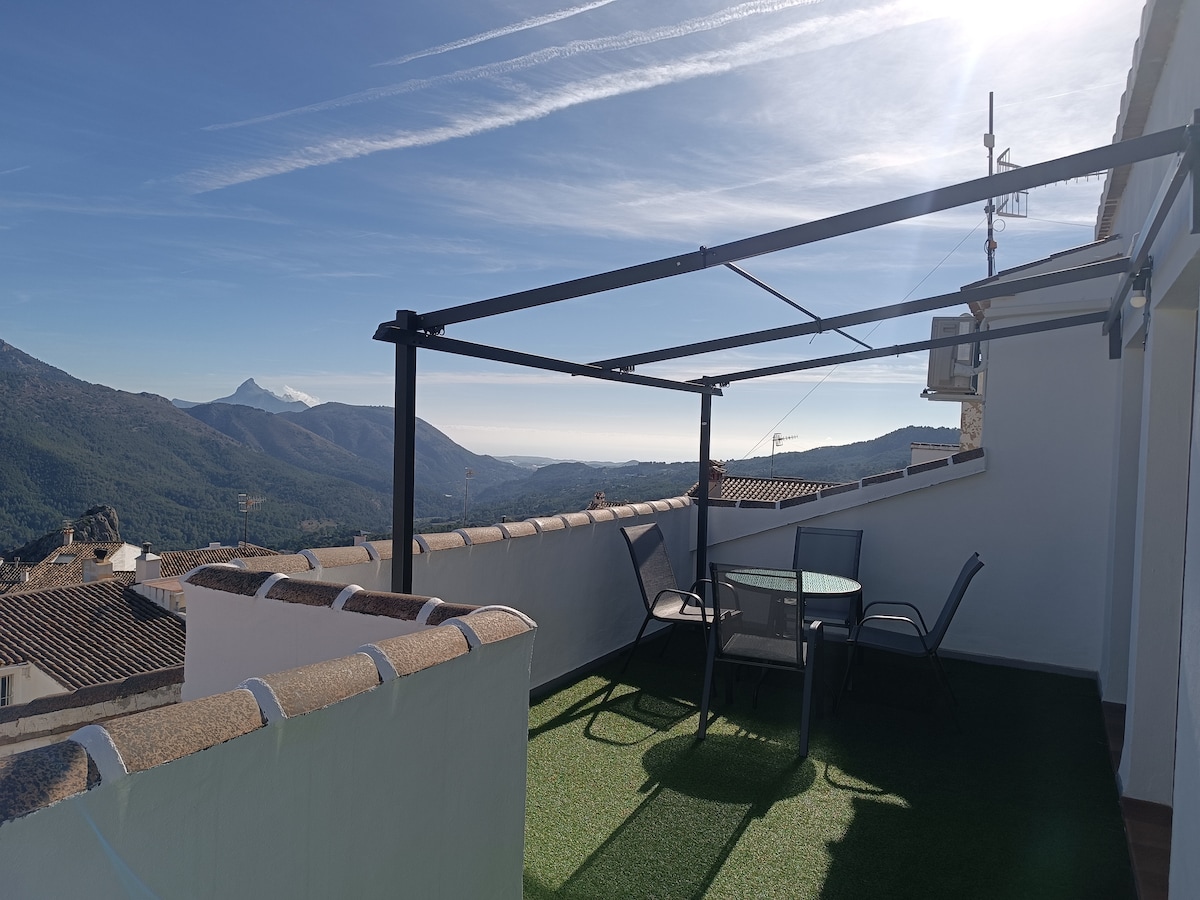 El apartamento se encuentra situado a 200 metros del casco antiguo del pueblo. Es una tercera planta con orientación sureste. Dispone de 1 habitación principal con cama de matrimonio, baño, cocina y salón con sofá cama de apertura italiana. Todo el apartamento dispone de tarima flotante. La joya principal es su terraza, donde podréis disfrutar de maravillosos momentos, con vistas a las montañas de Aitana y Aixortà, y al fondo el pico de Bernia y el mar, Esperamos que os encante.