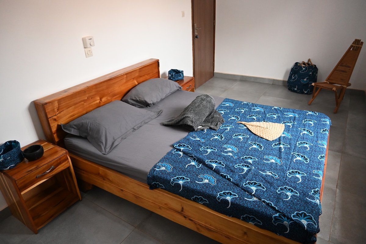 Nature lovers or couples wanting to escape city stress: come spend time by the lake near a sprawling 2.5 acres of lush greenery. Glamping Lakeview Ouidah is your dream getaway. The space holds two tents (Tente Aigrette and Tente Tourterelle) that overlook lake Toho and a vast green space. This listing is for Tente Tourterelle. For more than 2 people, you have to rent both tents. The tent is housed under a large straw hut on wooden stilts. Furnished terrace, modern bathroom, toilet, and kitchen.