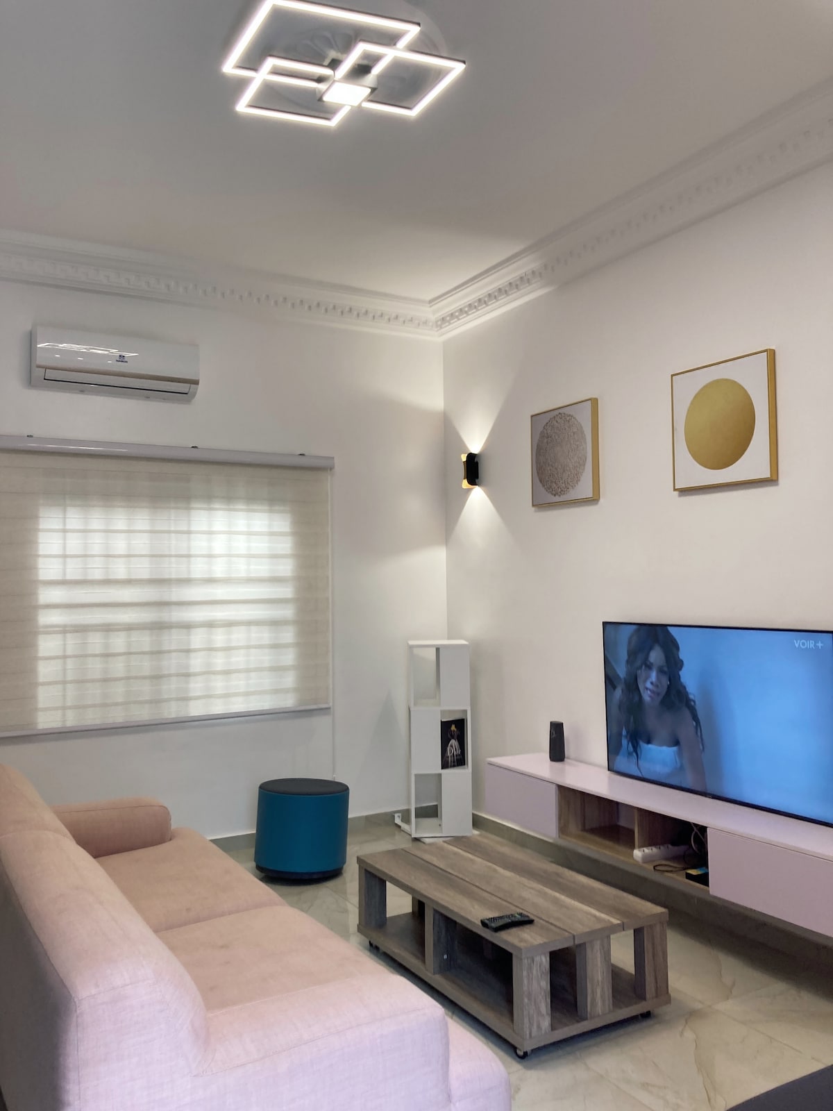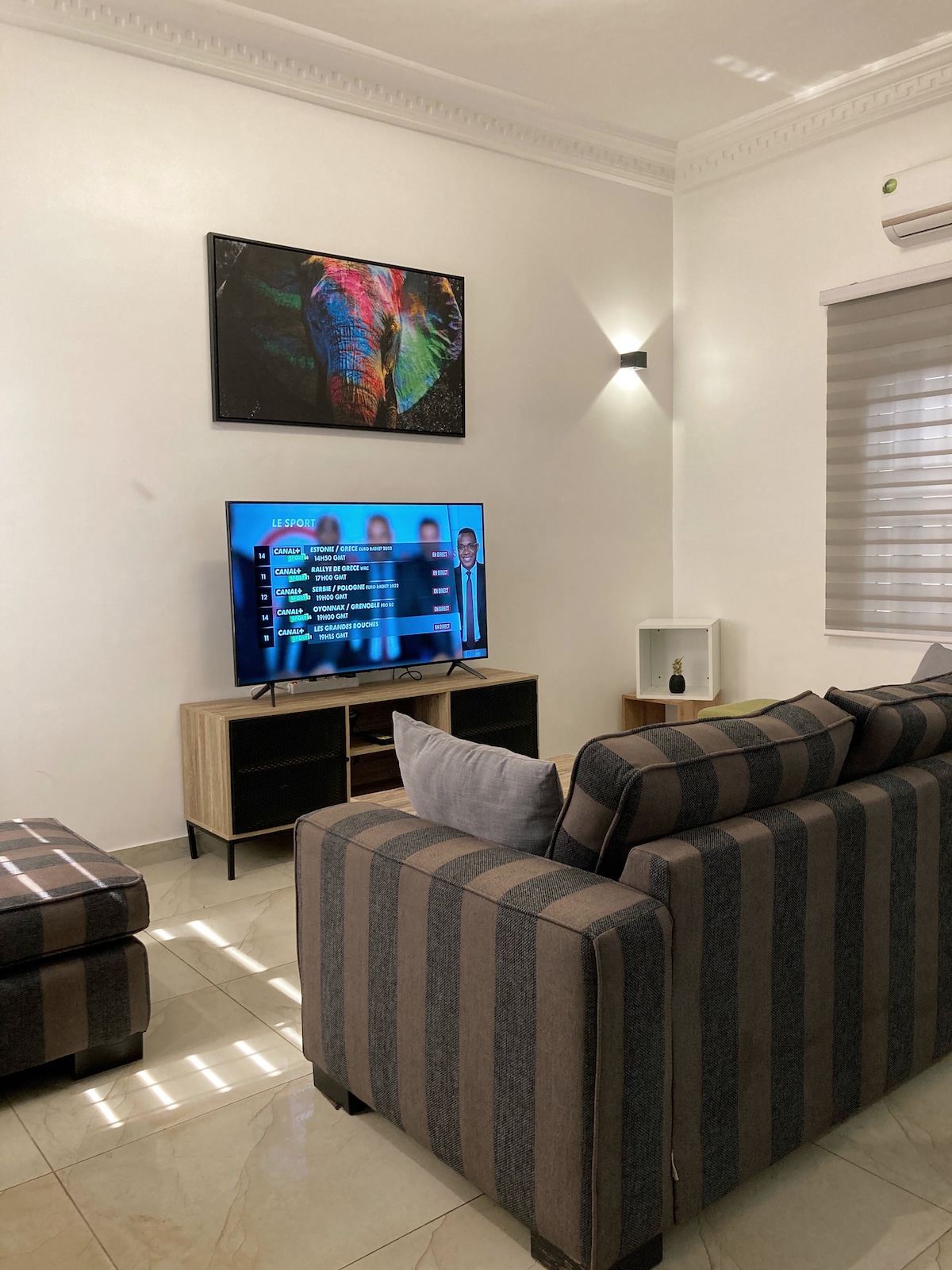 Situé dans une zone calme où on ne coupe pas souvent le courant à Cotonou. Nous avons un agent de sécurité sur les lieux. C'est appartement nouvellement construite et climatisatisé. Nous disposons aussi d'un wifi, d'un cable Canal+ Horizon et nous seront là pour vous assister le mieux possible pendant votre séjour. Ça se trouve au premier niveau de la maison en bas. Le courant est à la charge du client qu'il pourra recharger sur le compteur à carte(Ça permet de payer juste ce qu'ona consommé).