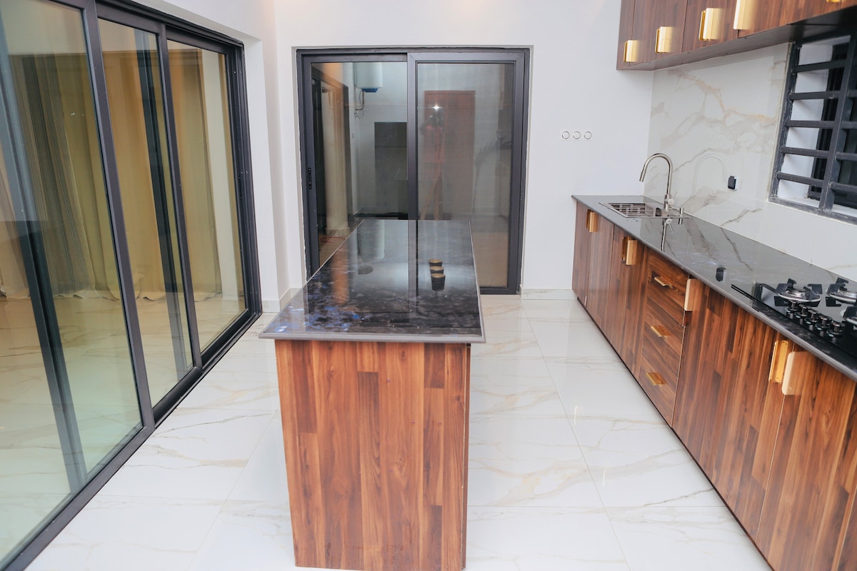 Détendez-vous dans notre logement calme et élégant. AkuaGold offre un environnement propice au repos sans pollutions, situé entre Cotonou et Ouidah. Un service à la carte est proposé alliant cuisine locale ou variée et chauffeur guide. Le café est servi gratuitement. Cuisine ouverte sur le salon avec frigo,cuisinière,four,micro-ondes, cafetière,grille pain électrique et couverts. Fer à repasser, sèche-cheveux, eau-chaude dans les douches et cuisine. Un gardien est disponible sur place .