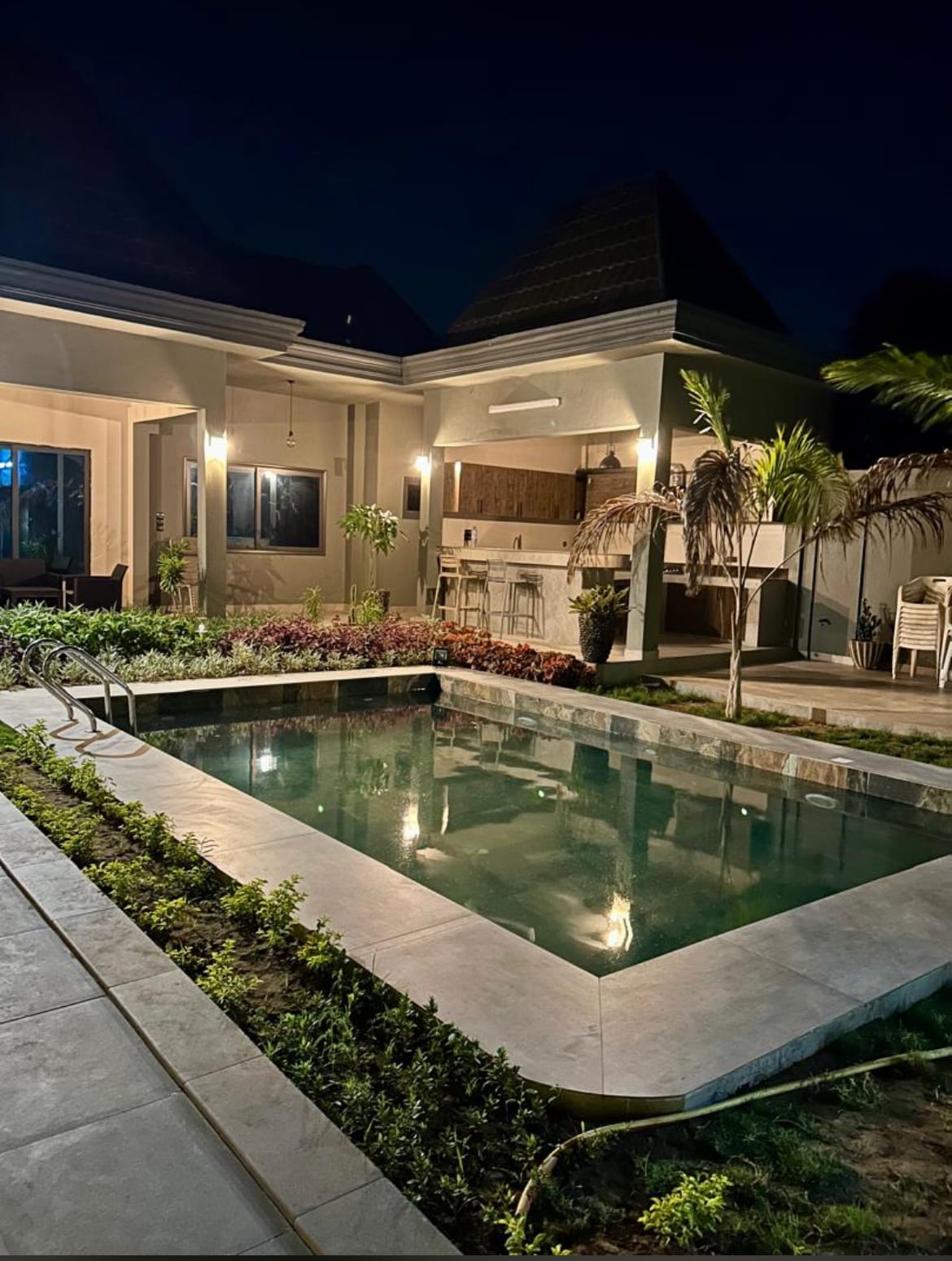 Une villa F4 dans la nouvelle cité Bethel de GCITT a Calavi en face des 20 000 nouveaux logements sociaux de la cité Ouedo en construction non loin du Lac touristique de Ganvié et du zoo Agoualand Piscine ,Jacuzzi ,climatisation ventilation , Wi-Fi et des chaînes TV ,disponible caméras surveillance extérieure Nb: compteur d électricité en ligne rechargeable les frais a la charge des hôtes Une résidence entièrement a vous endroit idéal pour les vacances en famille en groupe et autres .