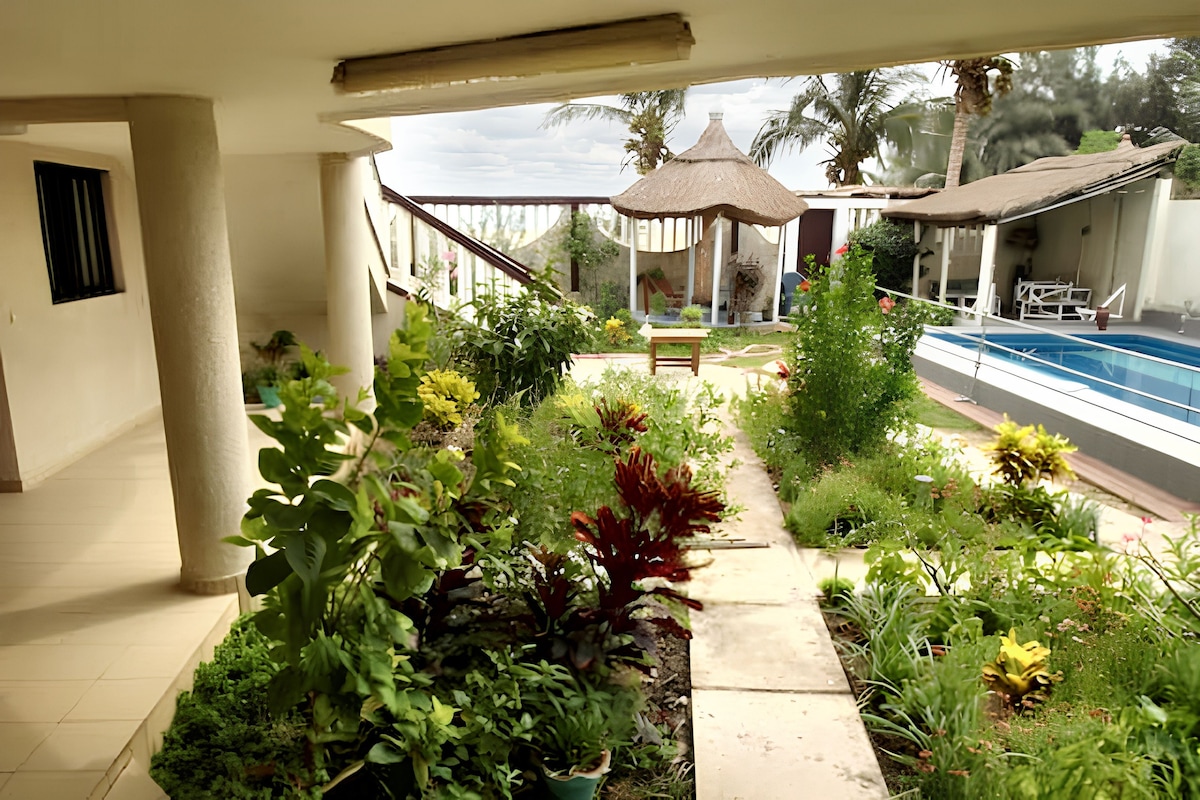 Ce beau duplex luxueux situé juste en face de l entrée principale du terrain de Ganou est un cadre idéal pour vos séjours dans la cité des kobourou. Une grande piscine vous y attend pour votre rafraîchissement pour des séjours > 3 nuits . Pour votre sécurité le duplex est doté d un gardien, un chien de race (Rottweiler) et des caméras de surveillance. Je vous laisse découvrir le reste et vous ne serez pas déçu. À préciser les frais d électricité sont à la charge du client.