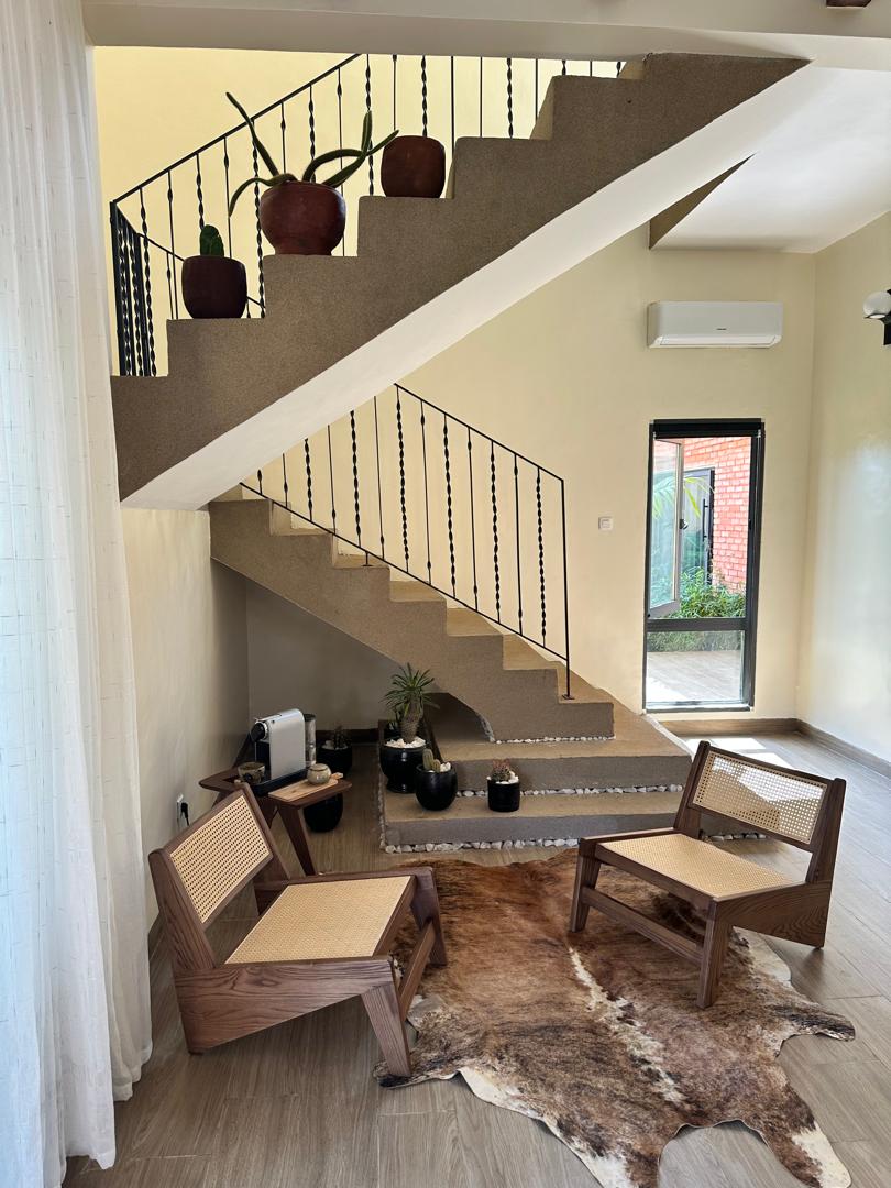 Stay in a stylish, centrally located, and quiet villa, just 9 minutes from the airport and a few steps from Fidjrossè Beach. Each of the four rooms has air-conditioning and its own bathroom. One has a private veranda. The foyer, green front yard, and rooftop terrace offer plenty of space for working, eating, watching TV, and relaxing. Cook in the fully equipped kitchen, enjoy free high-speed internet, and take advantage of the laundry service. Your base camp.