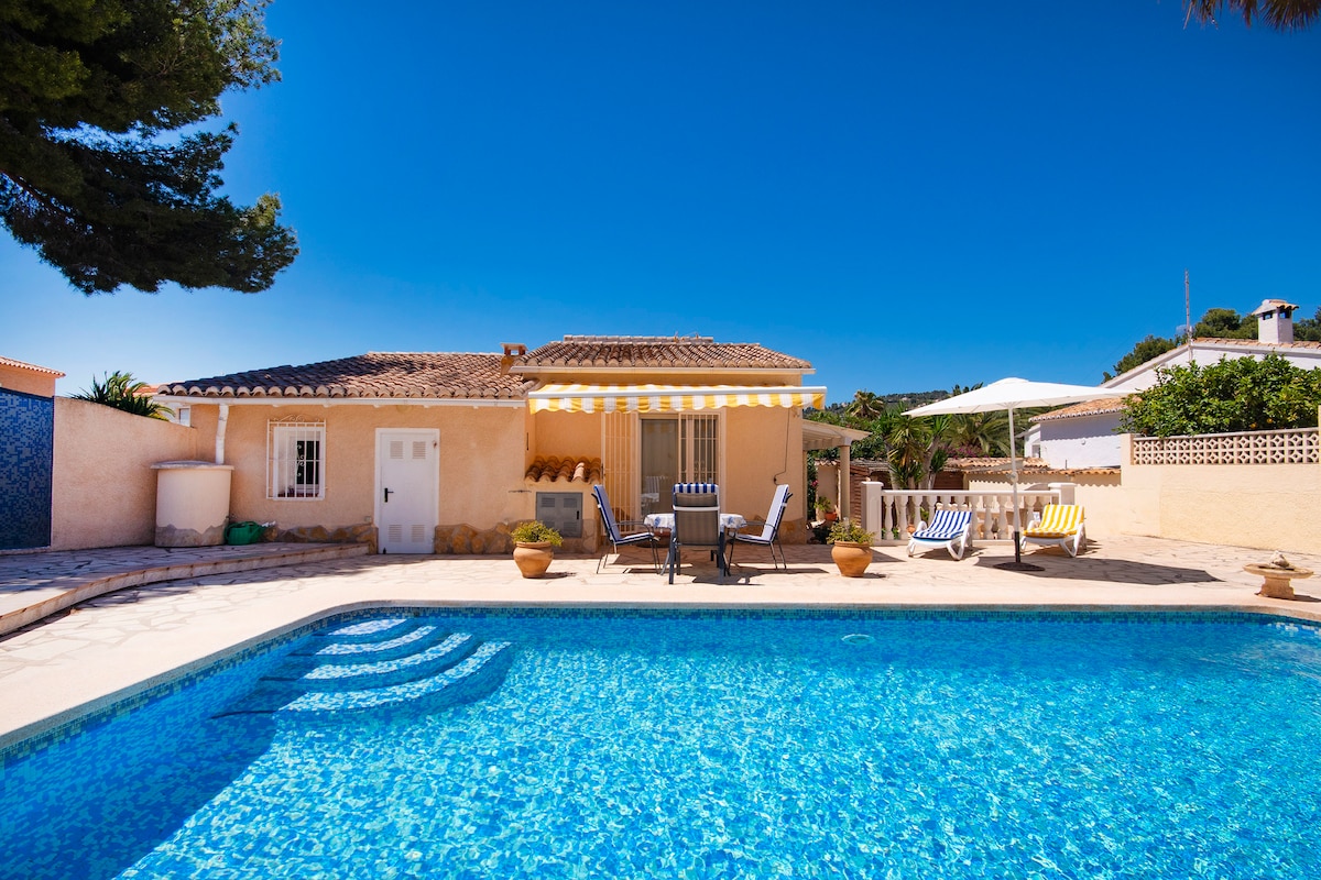 Our enchanting villa, with its incredible garden, swiming pool and barbecue, is at 15 mns walk from beaches and a watersports club, Les Basetes, where you will be able to realize nautical activities such as windsurf, catamaran, diving, etc. The marvelous sea view, and to the Peñon de Ifach, from the house, will make your holidays just unforgivable!!