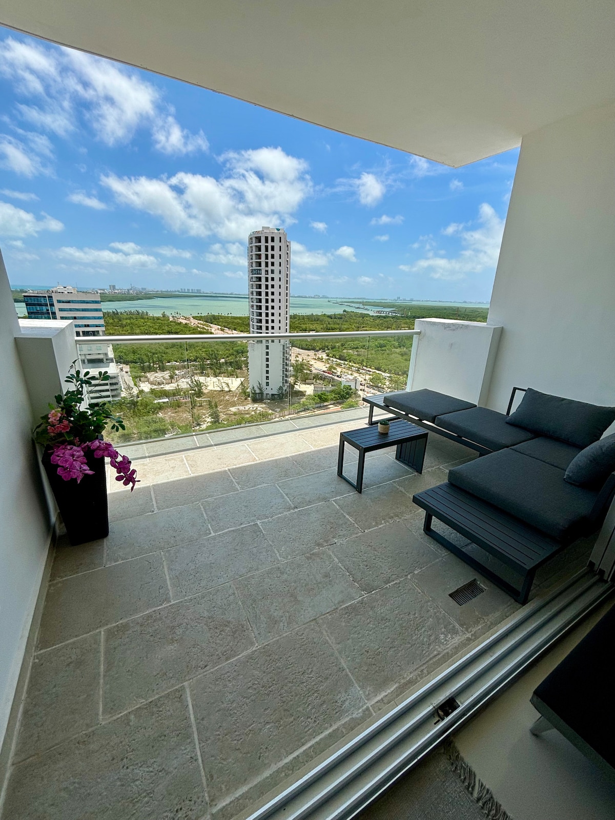 Brand new apartment, fully equipped for a pleasant and nice stay. Located on the 9th floor it has one of the most beautiful view on the Nichupté Lagoon and the sea. Just few step away you'll find the famous Hospital Galenia (Fertility Center Cancun), "Walmart Express" supermarket, many malls, restaurants and cafeterias. The condo has its own pool, sundeck, barbecue, gym and a large underground parking.