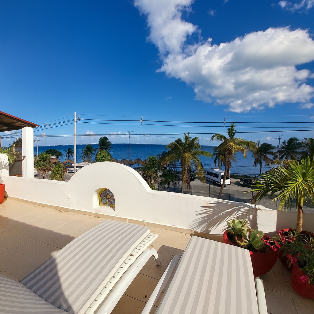 Espectacular Penthouse ubicado en condominio privado frente a la playa ⛱️ y el mar 🌊 (Cruzando la calle está la Playa El Niño). Cuenta con un nivel completo privado, con una piscina, camastros y mesita con sillas desde donde se ve la playa y el mar Caribe. Ideal para disfrutar del Caribe alejados del turismo masificado, pero a su vez muy bien conectados para disfrutar de las mejores playas, restaurantes y excursiones en la Riviera Maya. Incluye el servicio de Concierge privado gratuito.
