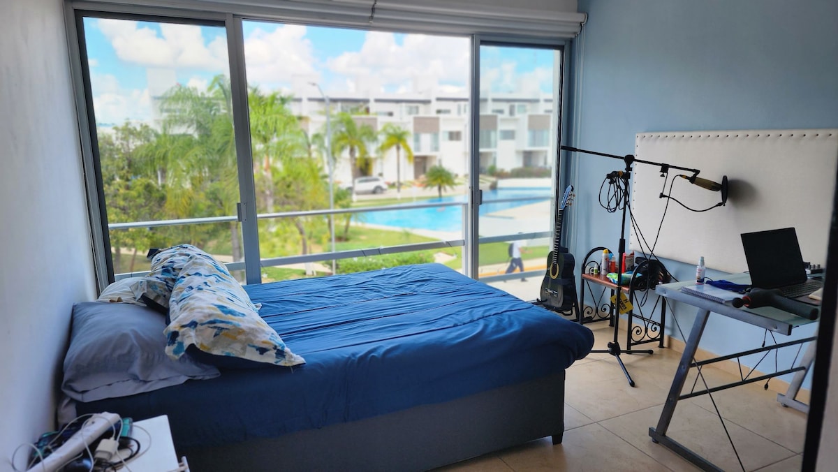 We love living here and I'm sure you will love it too. Our house is beautiful with a great pool to refresh! My place is good for solo adventurers. We love to make breakfast with only organic fruits, vegetables, eggs, and cheese :) We also have vegetarian or vegan breakfast available! The private room has a complete bathroom and AC so you can relax after a day of exploring Cancun! You are welcome to take a dip in the pool.
