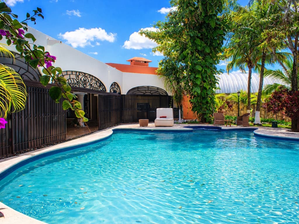 Luxury Private Villa Steps from the Beach. The house counts with 4 rooms with its own bathroom and a master bedroom with view to the garden, wifi, kitchen, dinning room, living room with TV, security guard 24/7 from the residencial área, pool área, tennis court, private parking. It is located in the hotel zone in cancun (in front of the Ritz Carlton) 5 minutes walking from the beach, 6 min. from the bus stop, few minutes by car from the best malls, bars and restaurants.