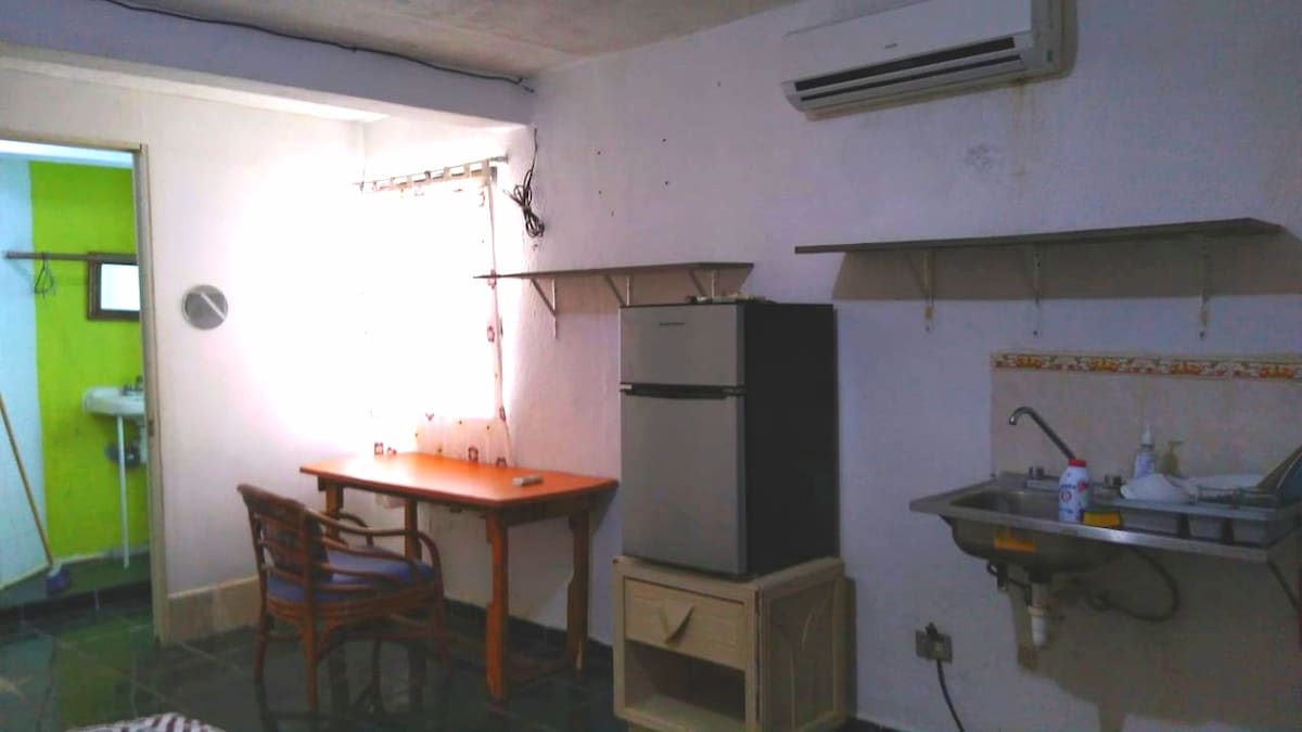 Fantástico estudio para una o dos personas en una zona céntrica y tranquila de Cancún. Cómodo, luminoso y muy bonito(nuevo). Tiene todo lo esencial para tu estancia en Cancún: TV con cable y Netflix, Aire Acondicionado, Wifi, Cocineta con refrigerador, alberca, top roof y mas amenidades. A pocos minutos caminando hay plaza comercial, restaurante, tiendas y transporte publico a dos calles para la ir a la zona hotelera y playas publicas. Todo lo necesario para sentirse como en casa.