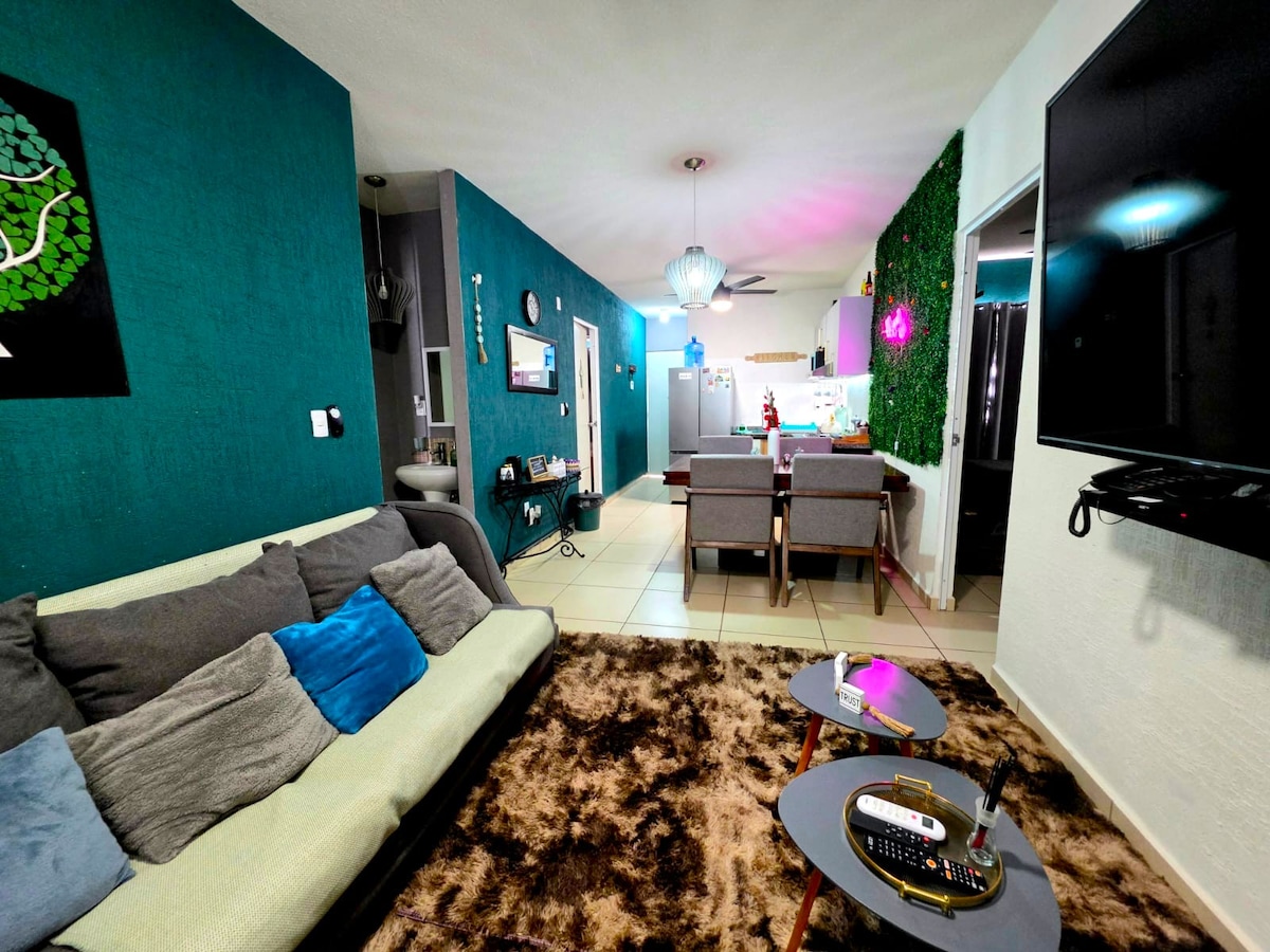Vive una estancia extraordinaria en nuestro bello departamento y disfruta de su espectacular alberca. Situado a 15 minutos de la playa en auto y a un costado de una plaza comercial. El lugar ha sido diseñado para enamorar tanto a parejas como a familias. Su estilo moderno y elegante te envolverá en un ambiente relajado y vibrante. Encontrarás el equilibrio perfecto entre comodidad y encanto. El destino ideal tanto para escapadas cortas como para estancias prolongadas.