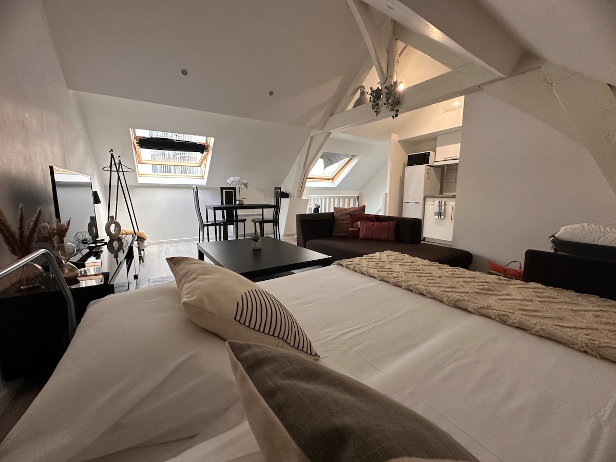 ✨ Quand un rêve devient réalité Plongez dans une parenthèse de douceur au cœur de Vernon, à deux pas de la 🚉 gare SNCF et des 🚌 bus pour Giverny 🌆 Emplacement idéal 📍 À seulement 300 m du centre-ville, bords de Seine pour vos balades 🕯️ Ambiance chaleureuse 🎨 Décor raffiné, atmosphère cocooning et plafond étoilé pour une touche magique et apaisante 🔥 Cheminée électrique ✨ Laissez-vous envelopper par la douce lueur et le crépitement de la cheminée, pour des soirées cosy et romantiques!