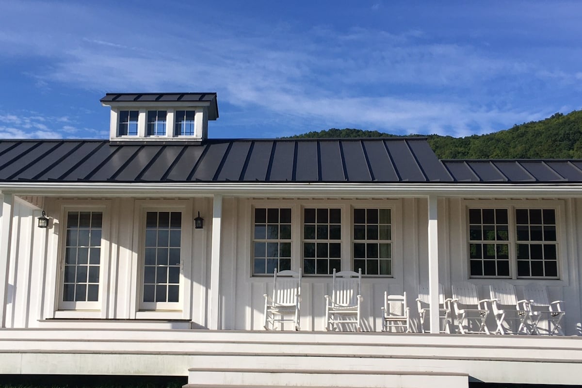 Escape to our historic and lovingly-renovated schoolhouse on a 250-acre verified-regenerative farm, where Green Mountain views meet modern comfort. Unwind in your private hot tub and barrel sauna after exploring farm trails, then fall asleep to the gentle sounds of sheep grazing in the pastures below. This is Vermont at its most authentic—working farm life with all the luxury. Level 2 EV charger, in-unit washer/dryer, and ductless AC for summer comfort.
