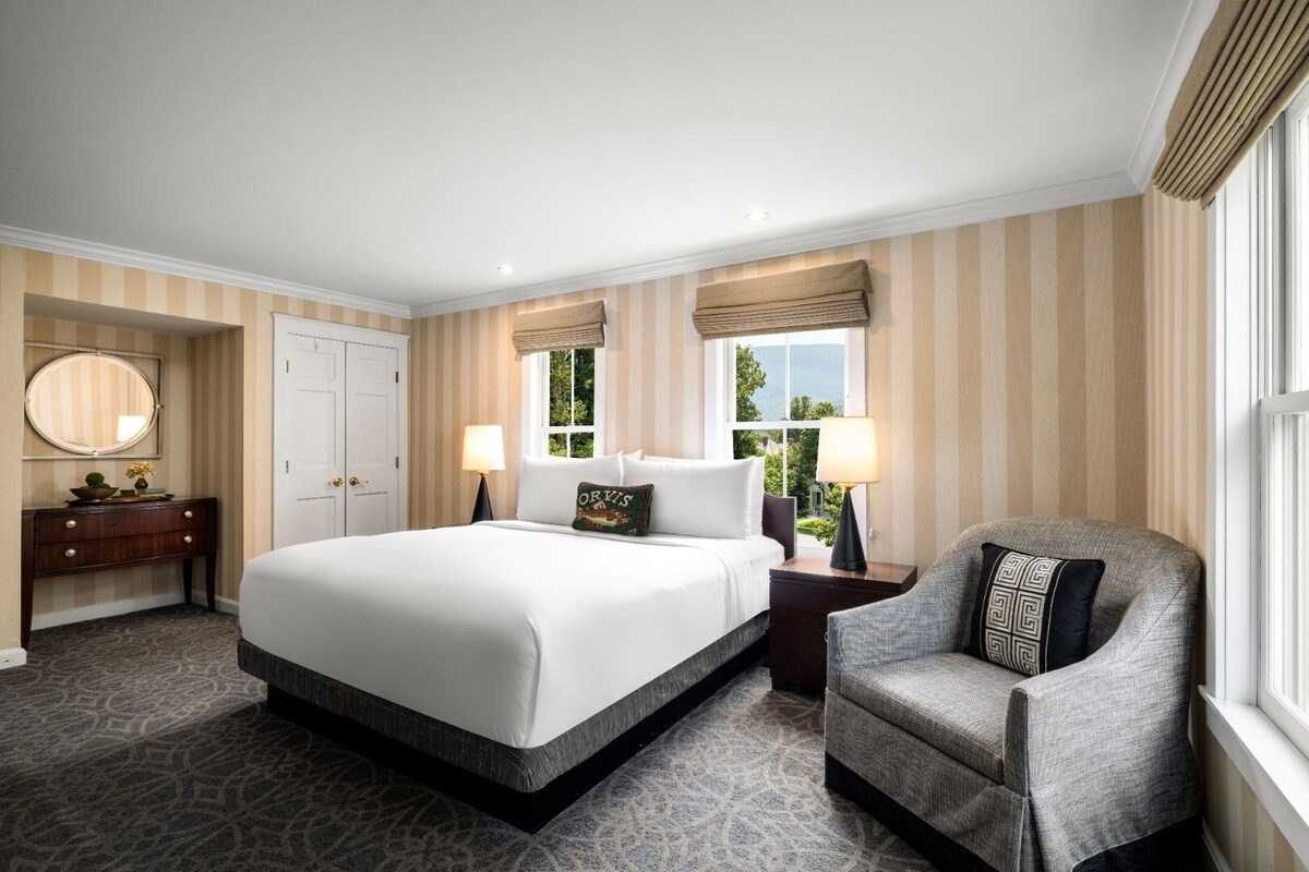 Experience the heart of Vermont in this charming room, just minutes from Manchester Center. Enjoy the comforts of home with 1 double and 1 twin bed, a seating area, a flat-screen TV, and a mini-fridge and coffee maker for your convenience. Unwind after a day of exploring the Green Mountain State with a cup of coffee or tea from our 24-hour Snack Lounge.