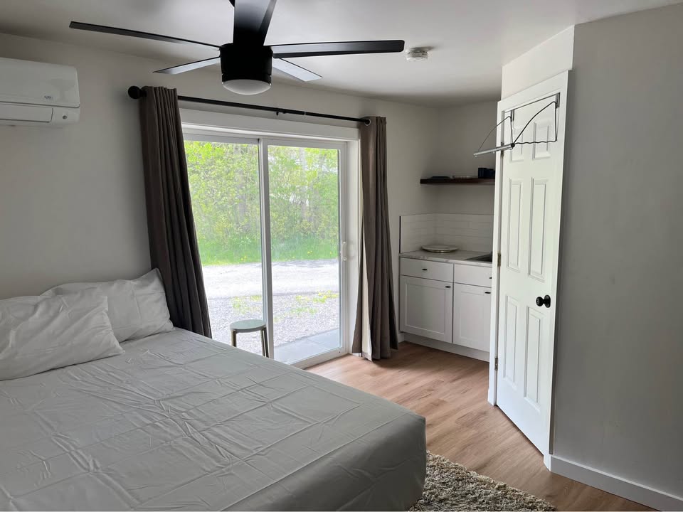 Zen 10 is your relaxing retreat in the heart of Vermont, with a cozy queen bed. The room decor is Vermont vintage, sourced locally with a story to tell. The room features a small kitchenette area with a coffee maker, mini-fridge, and a workspace. It's the perfect spot to unwind and find inner peace on your next Green Mountain State adventure! Zen 10 is located at our solar-powered property, just 15 minutes to Bromley, 30 minutes to Magic Mountain and 45 minutes to Stratton Mountain.