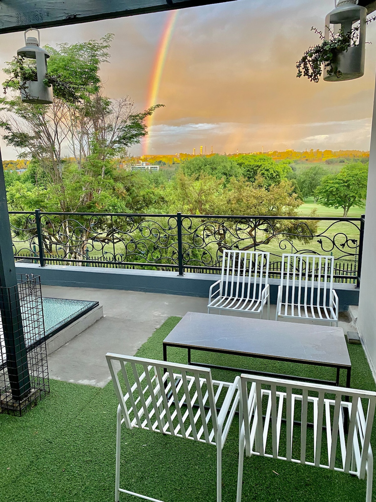 Solar powered battery inverter to escape load-shedding and forget your worries in this spacious, peaceful and centrally located place. A stone's throw from the best restaurants, shopping centres, sports facilities, and hospitals. Let the children play in the jungle gym and lush garden. Relax in the sauna and take a dip in a pool to cool down. Exercise at the gym and play pool. We look forward to welcoming you to our perfectly hidden getaway in the middle of bustling city landscapes.