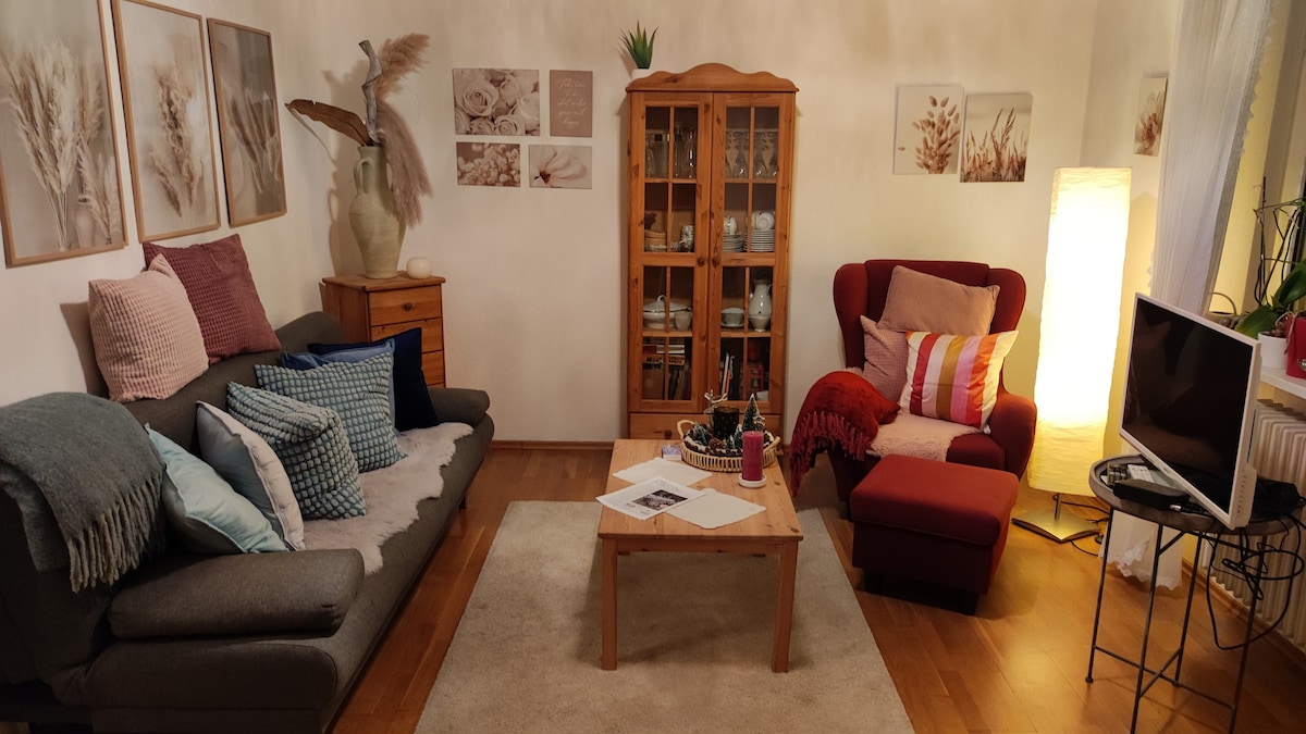 Kommen, wandern, wohlfühlen und ausspannen, Kraft tanken, Ruhe finden und sich aufgehoben fühlen in unserer Erdgeschosswohnung, die wir achtsam saniert haben. Wir haben den Hof vor 11 Jahren gekauft und bauen, gärtnern und leben hier seitdem sehr glücklich trotz all der Aufgaben die immer noch warten. Inzwischen lebt auch die Familie unserer Tochter Nele auf dem Hof. Nele ist auch immer ansprechbar. Ihr findet uns am Ortsrand von Wald-Erlenbach.