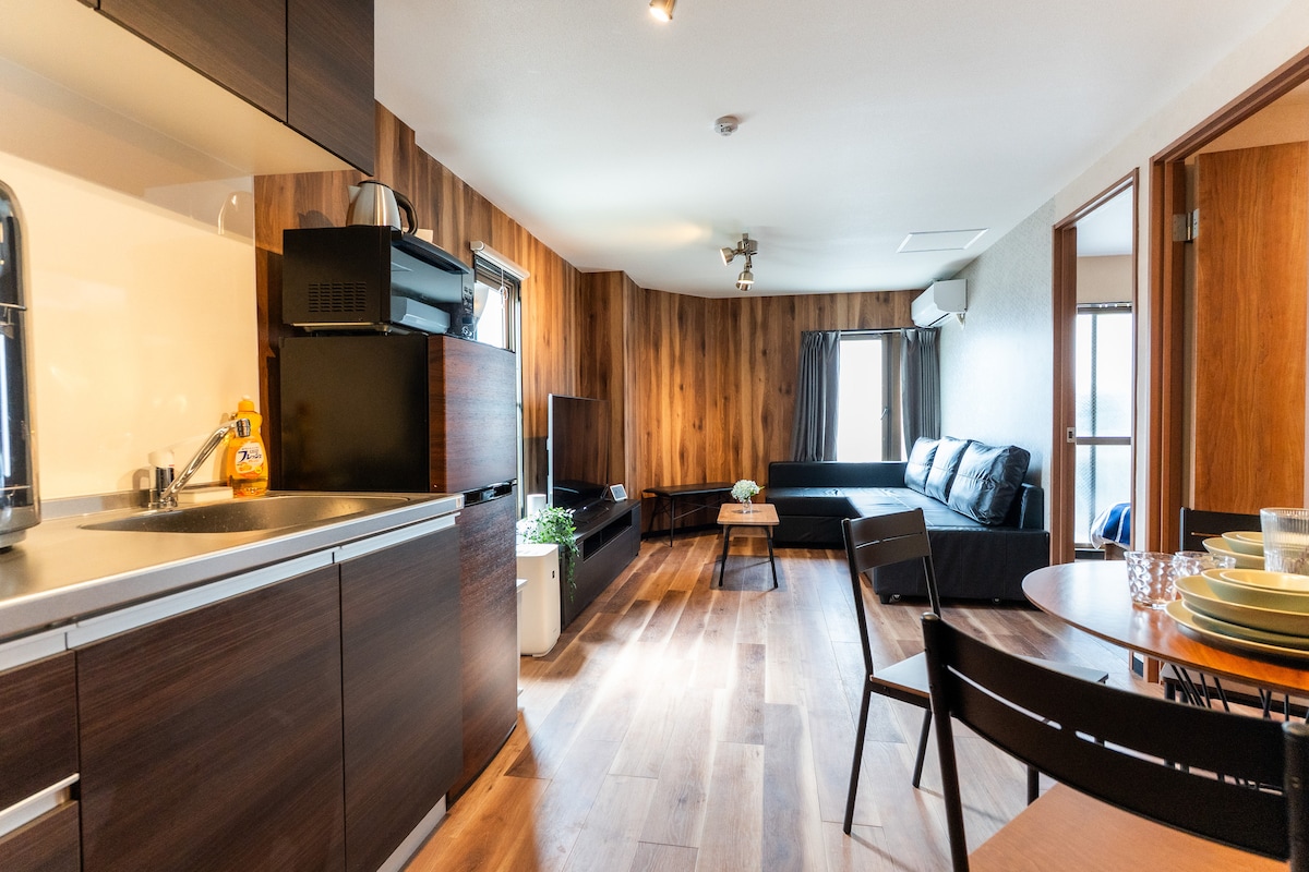 这是一间设计师风格的1LDK28.8㎡公寓。距离阪神难波线和大阪地铁中央线的九条站仅步行4分钟,乘坐阪神电车到难波站仅需3站,7分钟,到达关西机场只需一次换乘105分钟。从阪神九条站到环球影城只需一次换乘21分钟。步行15分钟即可抵达京瓷巨蛋大阪。位置优越,可轻松抵达大阪旅游的中心地带,如南部地区,心斋桥,新大阪和其他著名景点。附近有九条商店街等多个商业区,方便您享用美食、购物和观光。 这间公寓由知名设计师设计,拥有舒适的居住空间。 特点: -位于安静的住宅区的设计师风格的1LDK公寓 -最多可容纳4人入住 -步行1分钟即可到达超市和便利店 -配备基本烹饪设备 -整套出租 -自助入住系统 -免费洗衣机(提供免费洗衣液) -提供充足的洗浴用品(洗发水、护发素、沐浴露、浴巾、拖鞋、牙刷、化妆棉、棉签、剃须刀) -支持日语、英语、中文 -高速WiFi覆盖