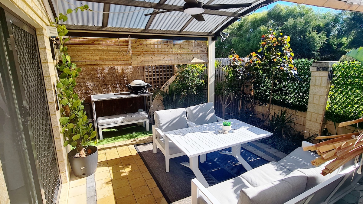 Relax in this secluded getaway with your very own private Spa. This modern 1 bedroom/1 bathroom studio is enclosed by 2.1m high bamboo fencing to provide you with a completely private experience. Less than 5 minutes walk to 2 local breweries, a 24-hour IGA Supermarket and dozens of restaurants and cafes. Fremantle is 10 minutes by car and Perth CBD is just 20 minutes. Free off-street parking is available at all times with your own designated car bay.