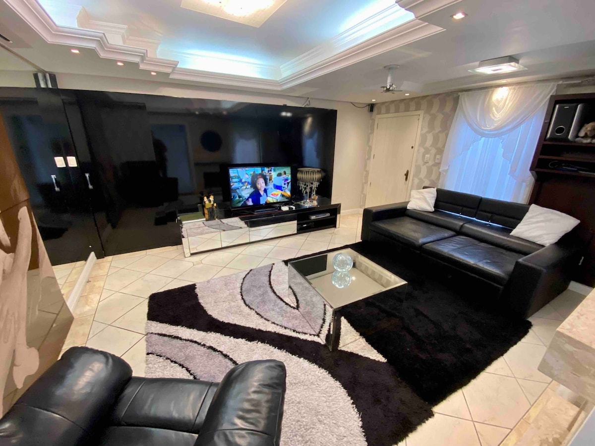 Meu espaço é bom para casais, aventuras individuais, viajantes de negócios, famílias (com crianças) e amigos peludos. A acomodação é uma casa de dois pavimentos, onde o segundo pavimento esta disponível para reservas. O espaço é acolhedor e de fino acabamento. O bairro é um local calmo, requisitado por ser próspero e boa energia. A cozinha é equipada com geladeira, forno microondas, forno elétrico, louças, panelas, cooktop, churrasqueira e espetos. A garagem disponível para um automóvel.